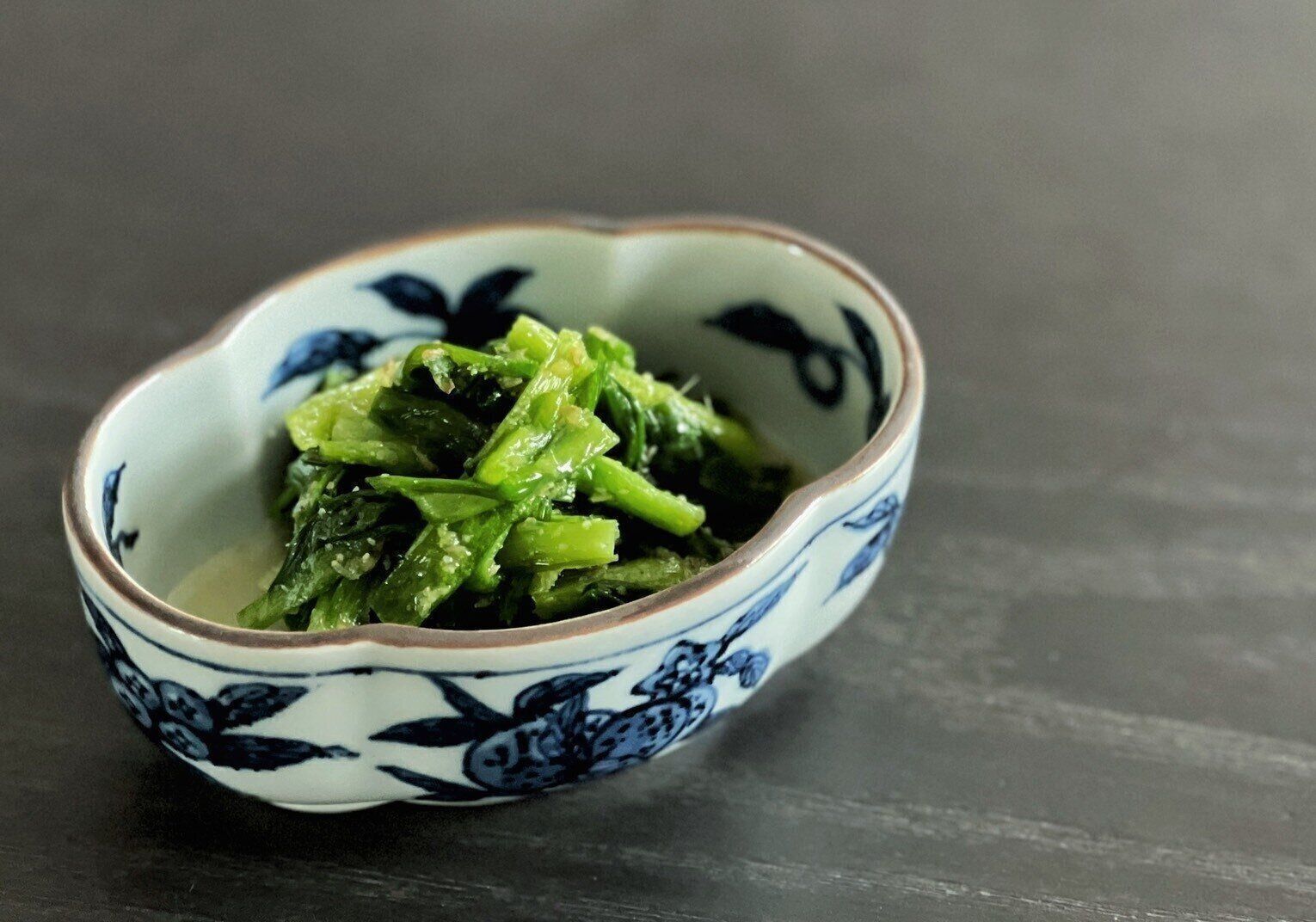 「ニラの生姜ナムル」では、冷凍保存した1束分のニラを使用します。適度な大きさに切ったうえで冷凍にしたニラがあれば、3分程度で一品できあがるため、忙しいときにも重宝します。
