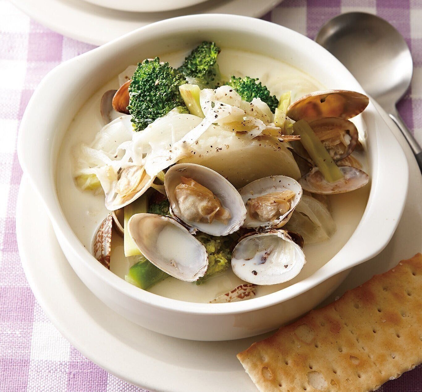 おすすめレシピ1:野菜たっぷりクラムチャウダー