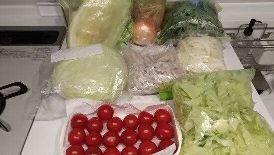 9歳と5歳の男の子がいるフルタイムワーママでサンキュ!STYLEライターのひいらぎりおさん。平日、食材を切る手間を省くためにやっているのが、週末のまとめ買いのあとの「切り置き」です。キャベツや、白菜などの葉物野菜はざく切りに、玉ねぎはくし切りに。ざるで軽く水を切った後、保存袋に入れてチャックを閉めて逆さまにしておけば、自然と水切りもできます。野菜だけでなく鶏肉などもひとくち大に切り、1回に使う分ごとに袋に入れて冷凍。平日の帰宅後は、「切り置き」した野菜や肉をフライパンで炒めたり蒸したりするだけ。配膳や部屋の片づけをしながらも、帰宅後15分で完了するそう!