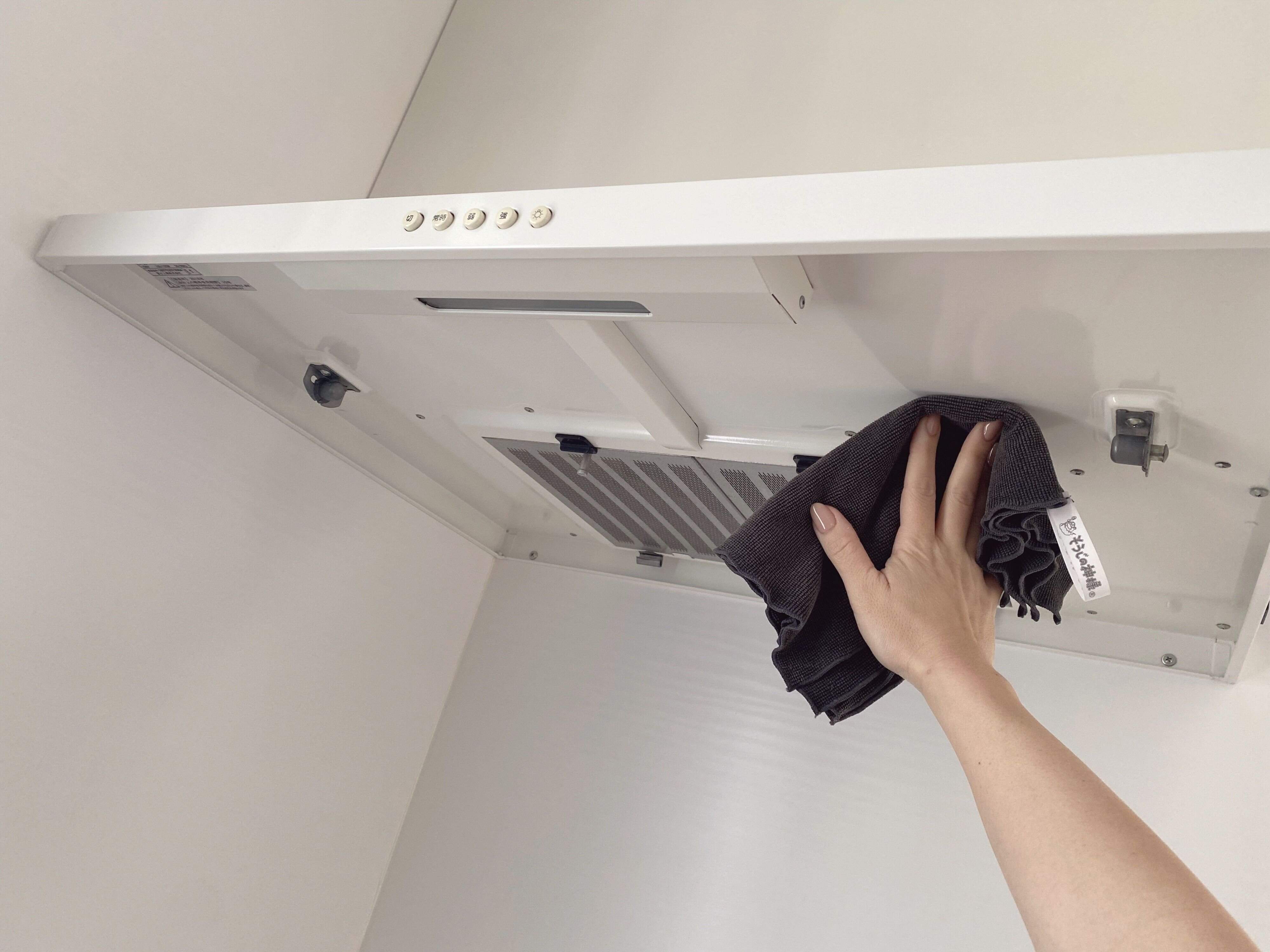レンジフード本体は、中性洗剤を含ませたクロスでしっかりと拭きます。
