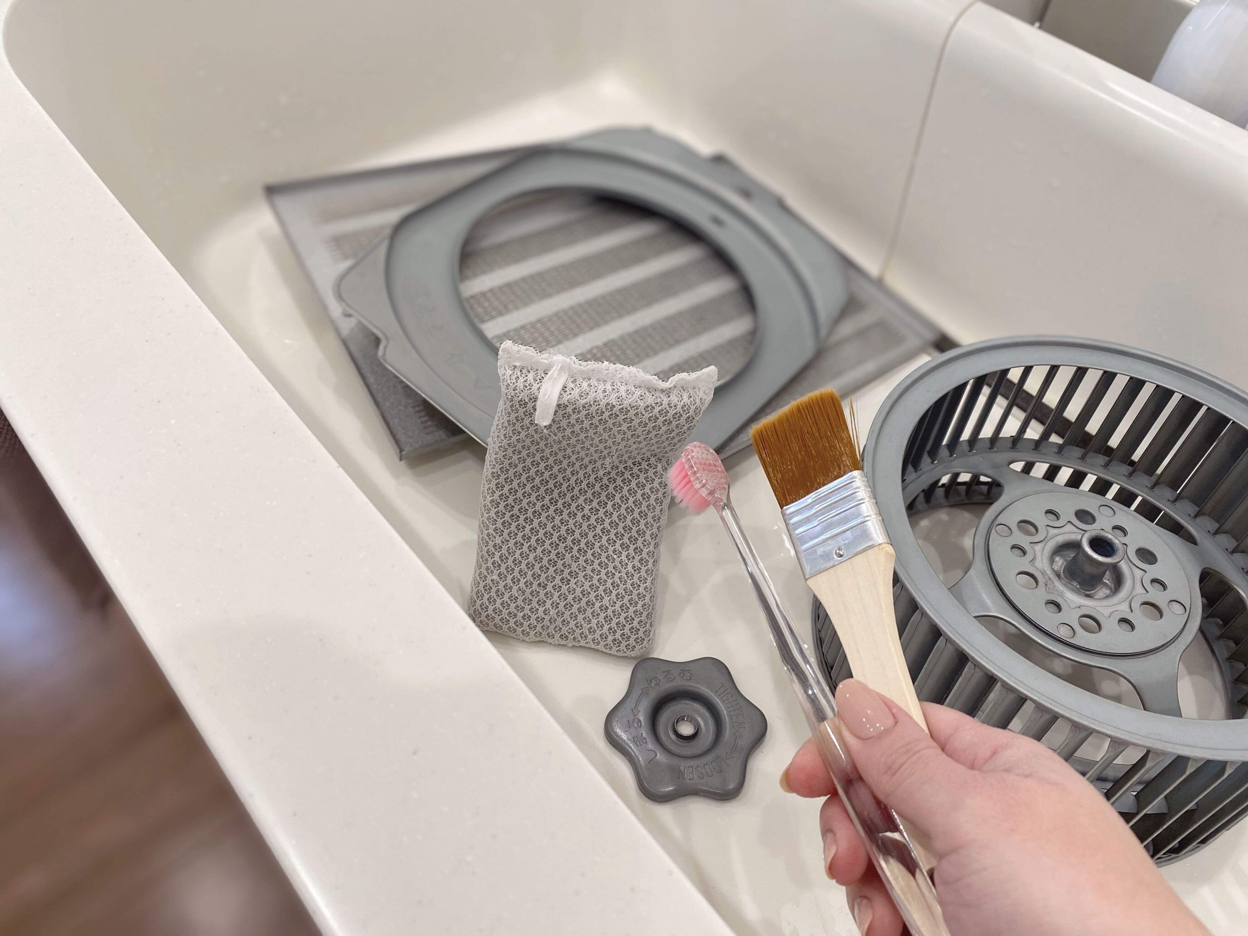 取り外したパーツで丸洗いできるものはシンクに置きます。