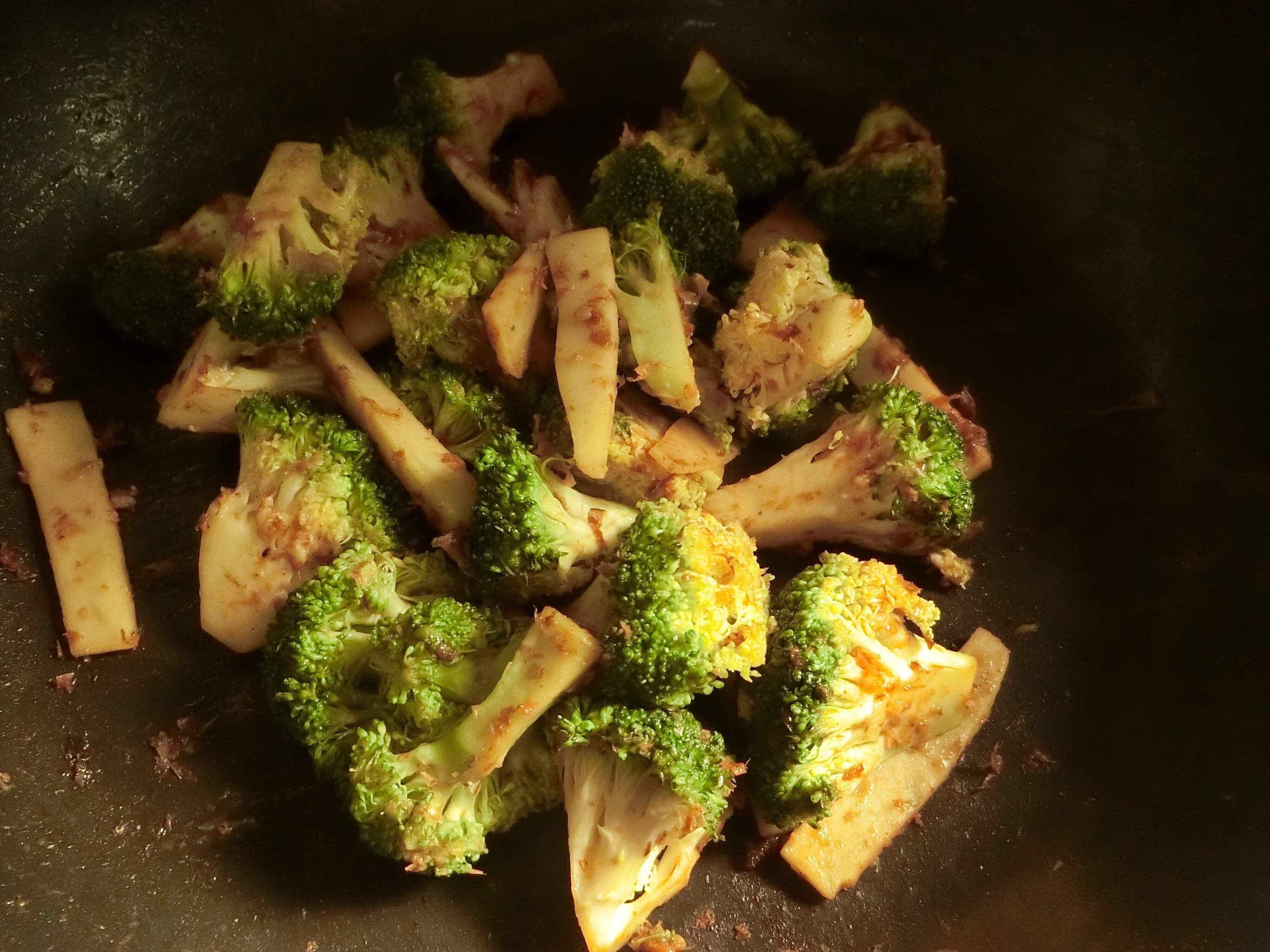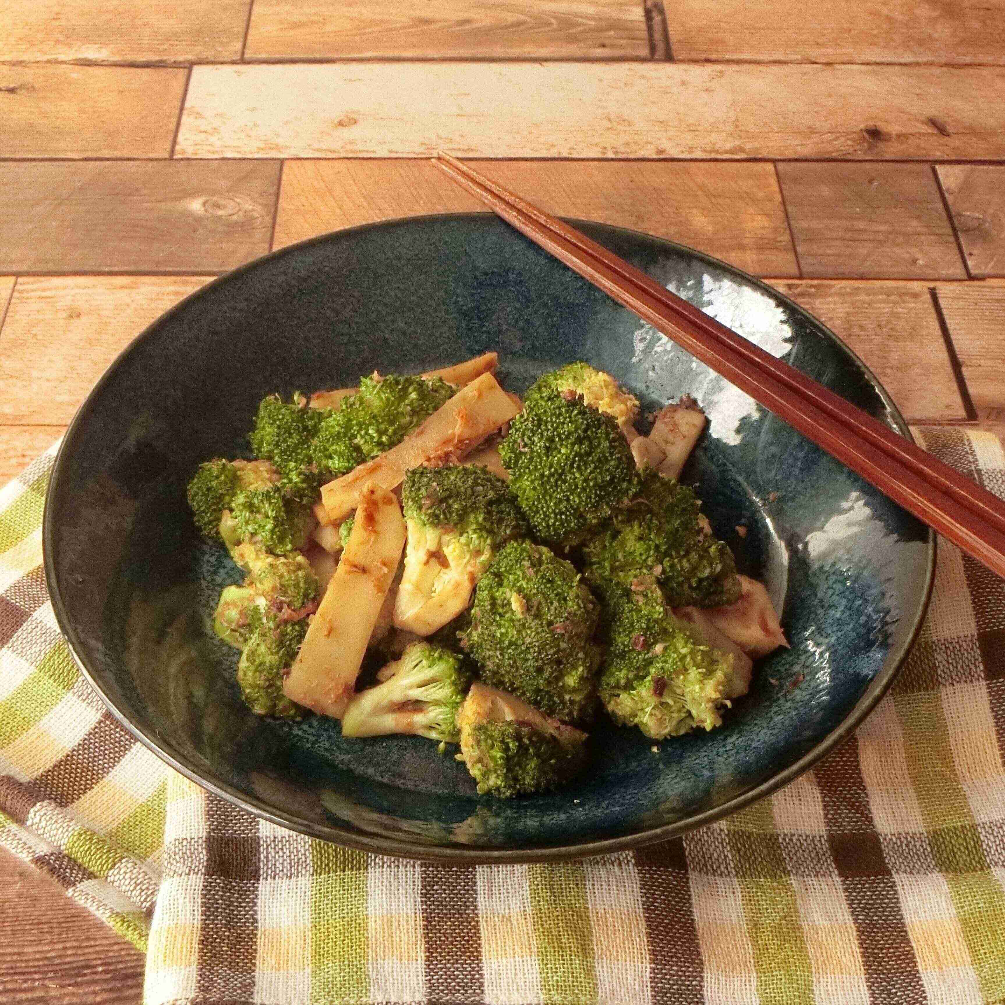【3】ブロッコリーがしんなりしてきたら、かつお節としょう油を入れて味つけして完成。
