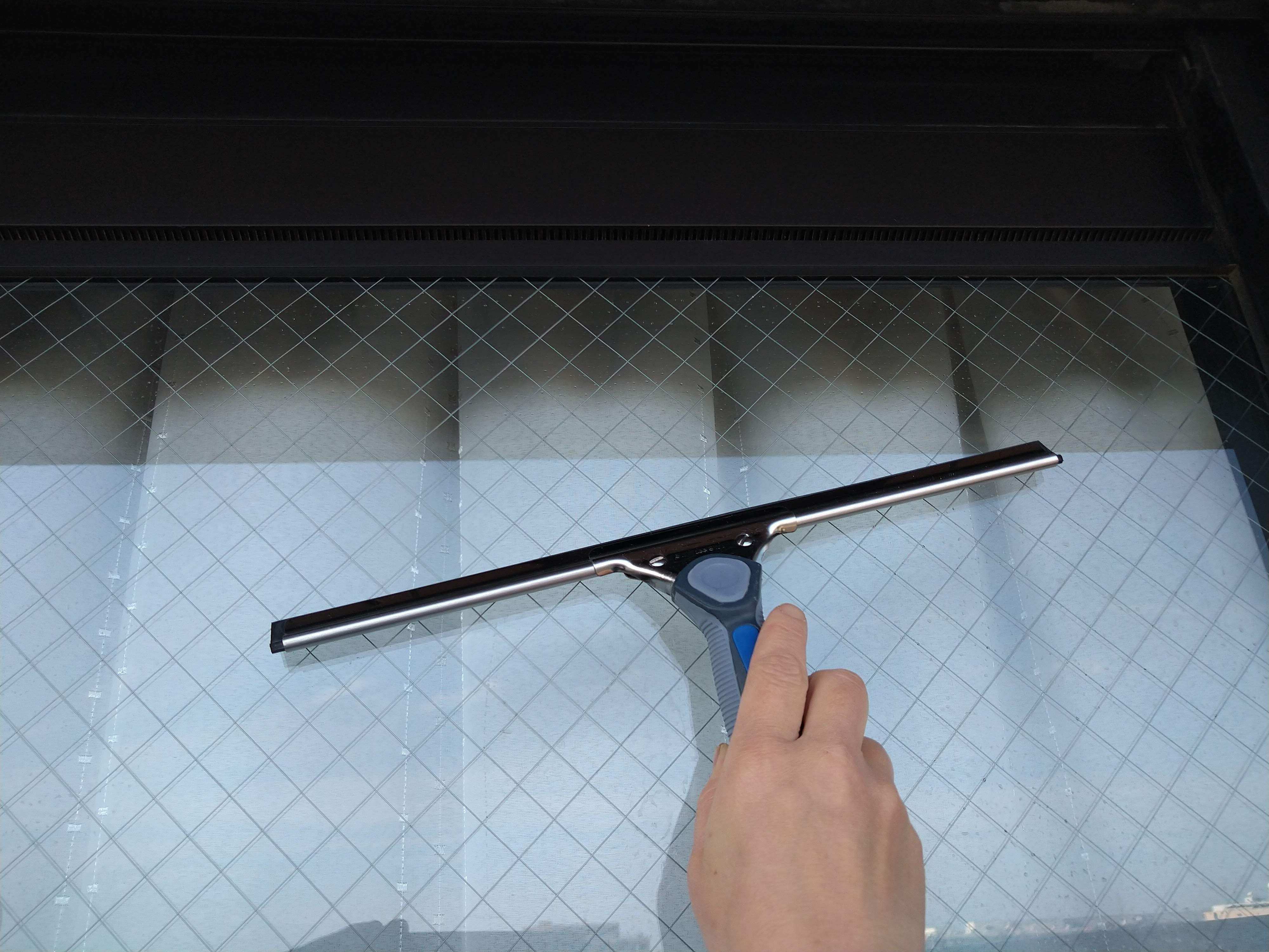 - 手順4.水滴をスクイージーで一気にかき落とし、クロスで拭く