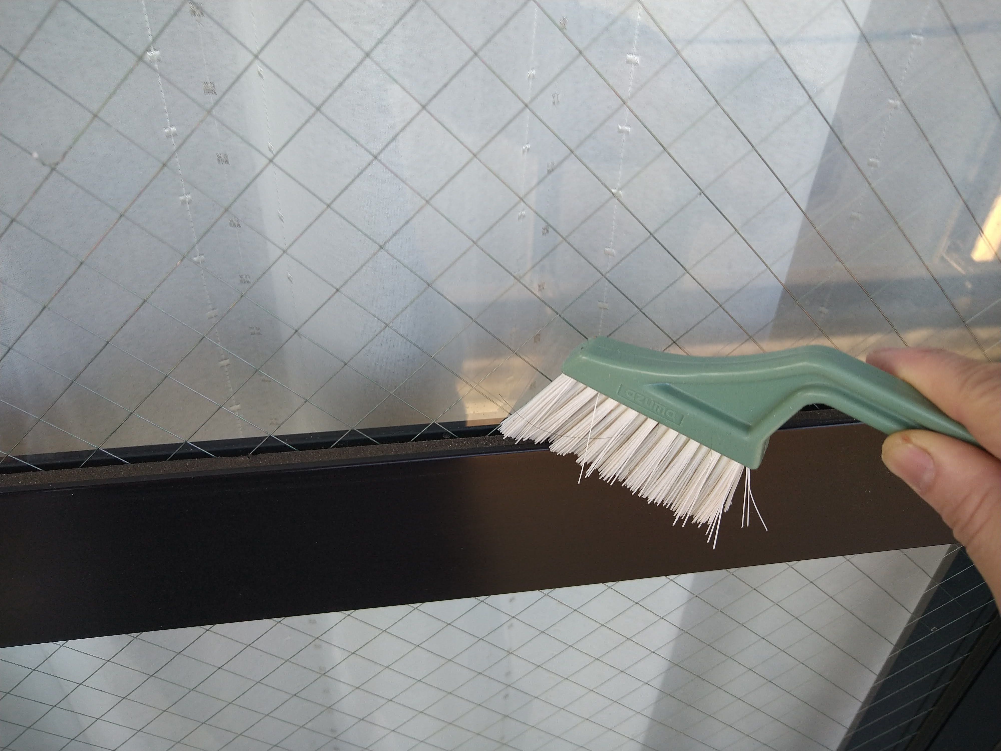 手順1.まず窓全体のほこりや土をブラシで落とす