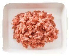 ひき肉に味つけの材料をもみ込み、厚さ1cmのだ円形にまとめる