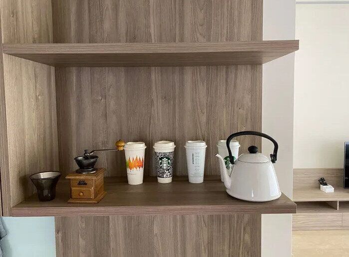 かわいいからとついつい買い集めてしまう雑貨類。飾っておくだけでワクワクすることもありますよね。でも飾る雑貨が多すぎると、それをどかして拭いたり、ほこりを払ったりと何かと不便なことに気がついたサンキュ!STYLEライターのちぃこさんは、インテリア雑貨を飾ることをやめました。写真はキッチンの棚。やかんやコーヒーミル、タンブラーといったお気に入りの実用品を飾るように収納しています。毎日使う物なのでサッと取り出しやすく、しまうときも楽。実用品もデザインにこだわれば、こんなに素敵になるんですね!