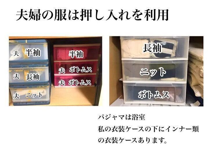 毎年、ストレスを感じている人も多い「衣替え」をやめました。洋服も大好きでおしゃれ上手なまるやまひろこさんですが、洋服は収納できる量しか持たないのがルール。だから、季節ごとの洋服があっちこっちに置かれることはなく、写真のようにきちんと仕分けされて一カ所にまとめて収納されています。洋服は、持ちすぎなければ「衣替え」も必要がないのですね!