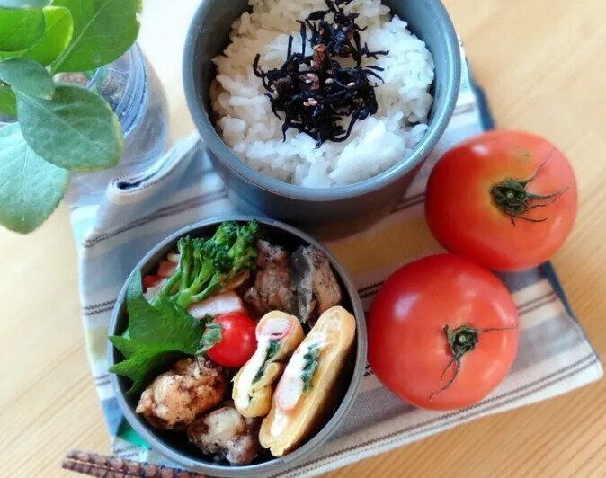中島さんは、わざわざ時間をとってお弁当のおかずをつくることをやめたのだそう。「週末につくったつくり置き」「晩ごはんを多めにつくり、先取りして冷凍しておいたもの」「前日の晩ごはんの残り物」などをうまく使い、夫婦のお弁当をつくっています。これらがあるのでお弁当は、10分ほどで完成するそうですよ!