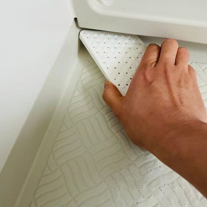 鋭角にとがった一角があるので、普通のスポンジやブラシでは届きにくい床の隅々までしっかりと汚れをかき出してくれます。私は今まで、スポンジで無理矢理、四隅の掃除をしていたので、「こんなにキレイに汚れが落ちるのか!」とビックリ。