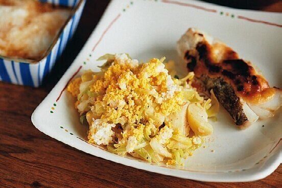 「食材を捨てたくないんです!」という野口さん。その極意は、買いすぎない、簡単な下処理で食材の鮮度をキープするなど、とてもシンプルです。また、野菜をまとめて下処理して食べつなぐワザも秀逸。「キャベツを一気に刻んで塩もみし、その後はサラダなどに利用する方法は、勤務先のレストランで覚えました」。食材をムダなくおいしく使い切る知恵は、フレンチのまかない仕込みです。