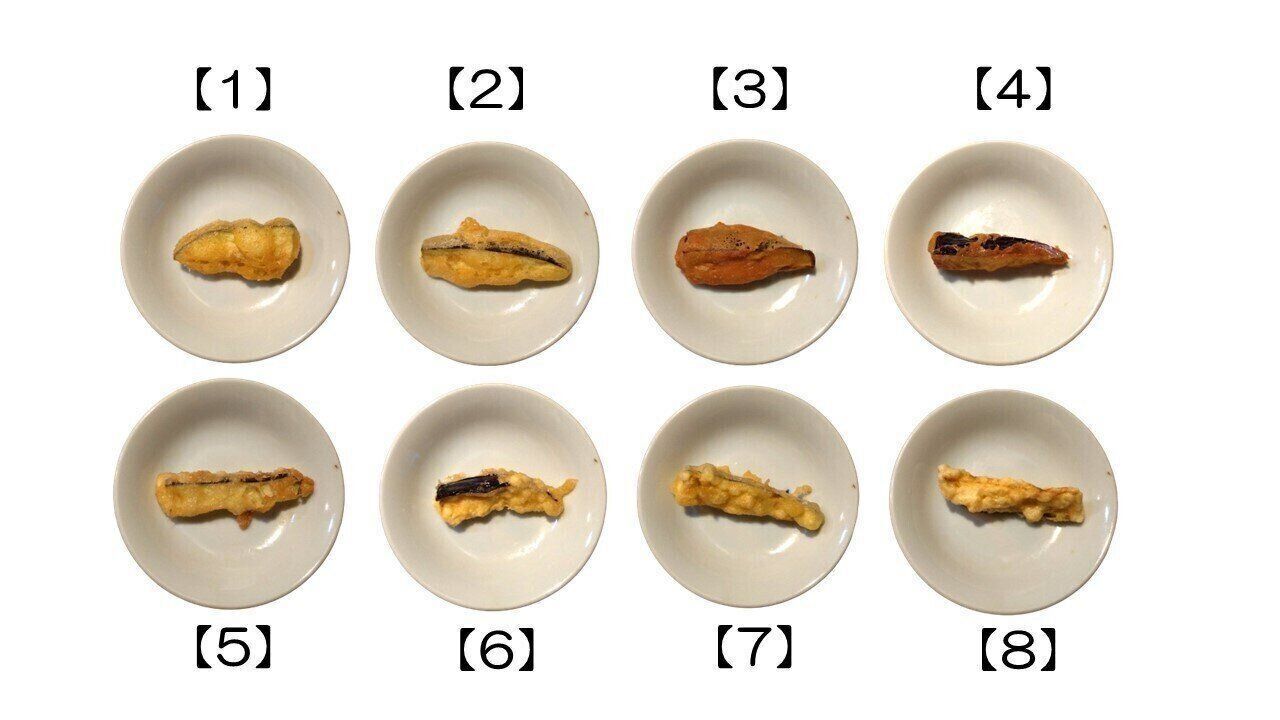 実際に食べてみると、一般的な天ぷらに近いサクサク感があったのは【1】【2】、カリッとした歯応えを感じたのは【1】【5】という結果でした。