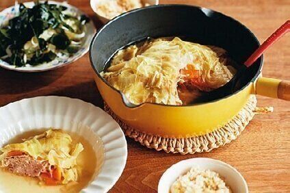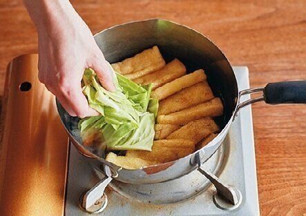 硬いけど、栄養豊富なキャベツの外葉を捨てちゃうなんてもったいなさすぎる!ということで、野口さんは煮ものに利用。油揚げも入れてしっかり味がしみれば、りっぱな副菜になります。