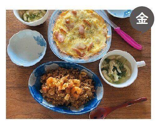 あしが早い鶏ひき肉は日曜日に半端野菜と炒めてドライカレーにし、金曜日まで保存。日曜日に多めに作ったナムルは、火曜日にリメイクしてぺろり。鶏胸肉からはがした鶏皮は、月曜日のスープに入れて使い切る。