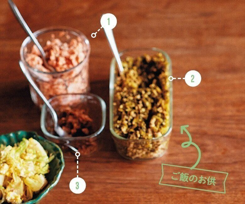 3 だしがらの削り節とたたいた梅干しを混ぜた梅おかか