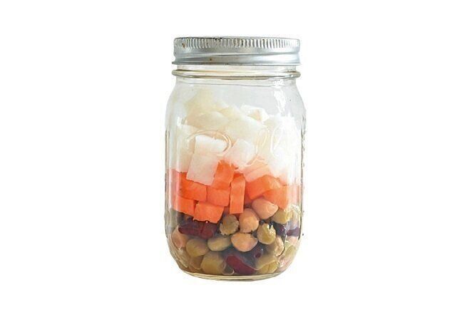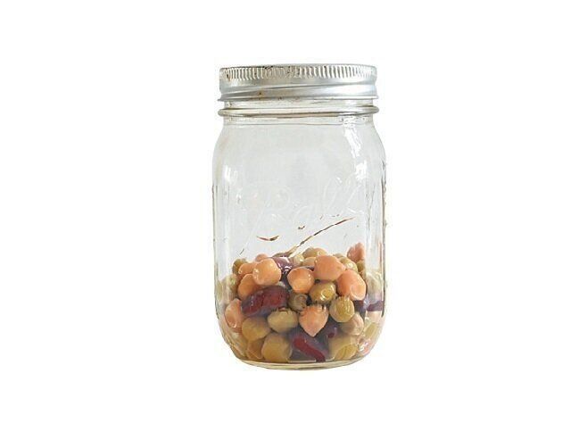 半分残ったミックスビーンズを保存びんに投入。