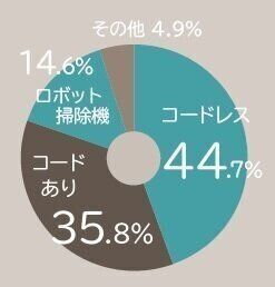 サッと手に取れて、階段など家中どこでも気軽に使えるコードレスタイプが人気。コードあり派は、吸引力を重視しているよう。