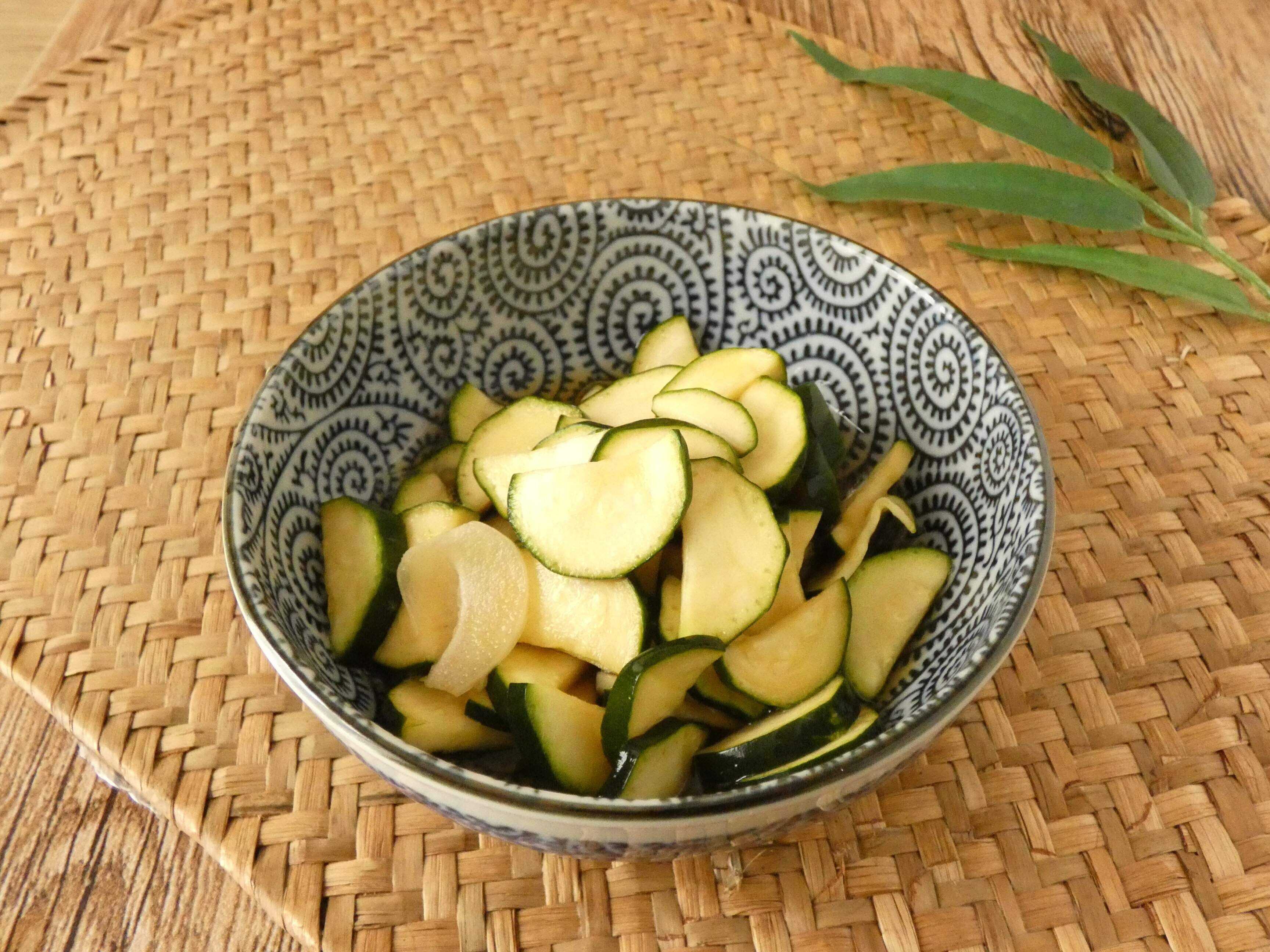 ズッキーニのニンニクめんつゆ漬け