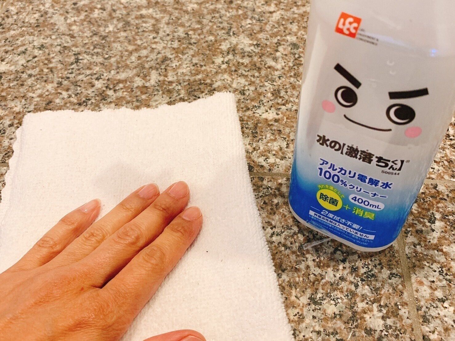 アルカリ電解水は泡立つこともないので、水ですすぐ必要もなし。マンションの玄関掃除には重宝するアイテムです。アルカリ電解水は100均や薬局など身近なお店で購入することができますよ。