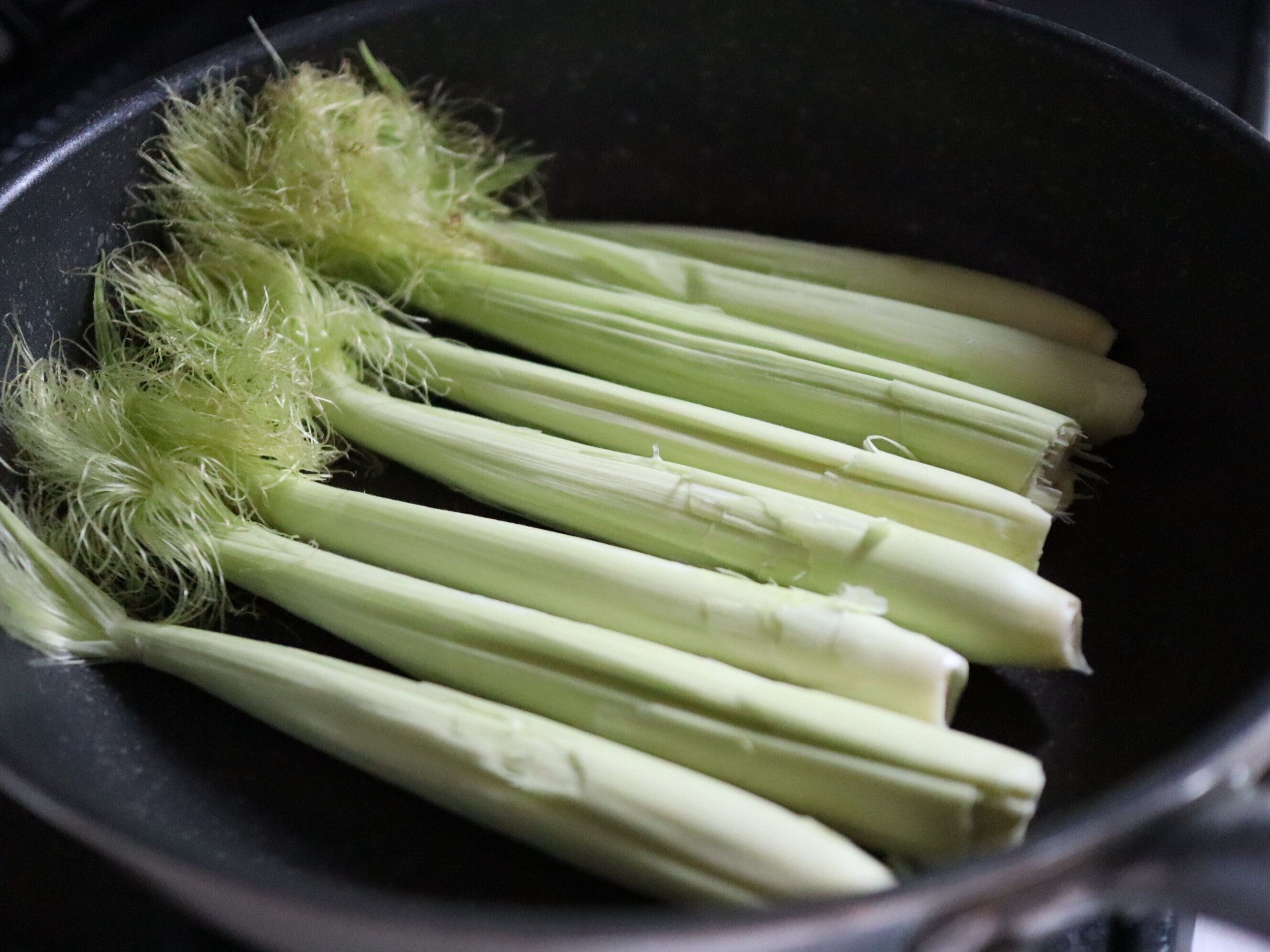 皮の中で蒸し焼きになって甘みがギュッと閉じ込められ、ホックホクに仕上がったヤングコーンをお楽しみください。