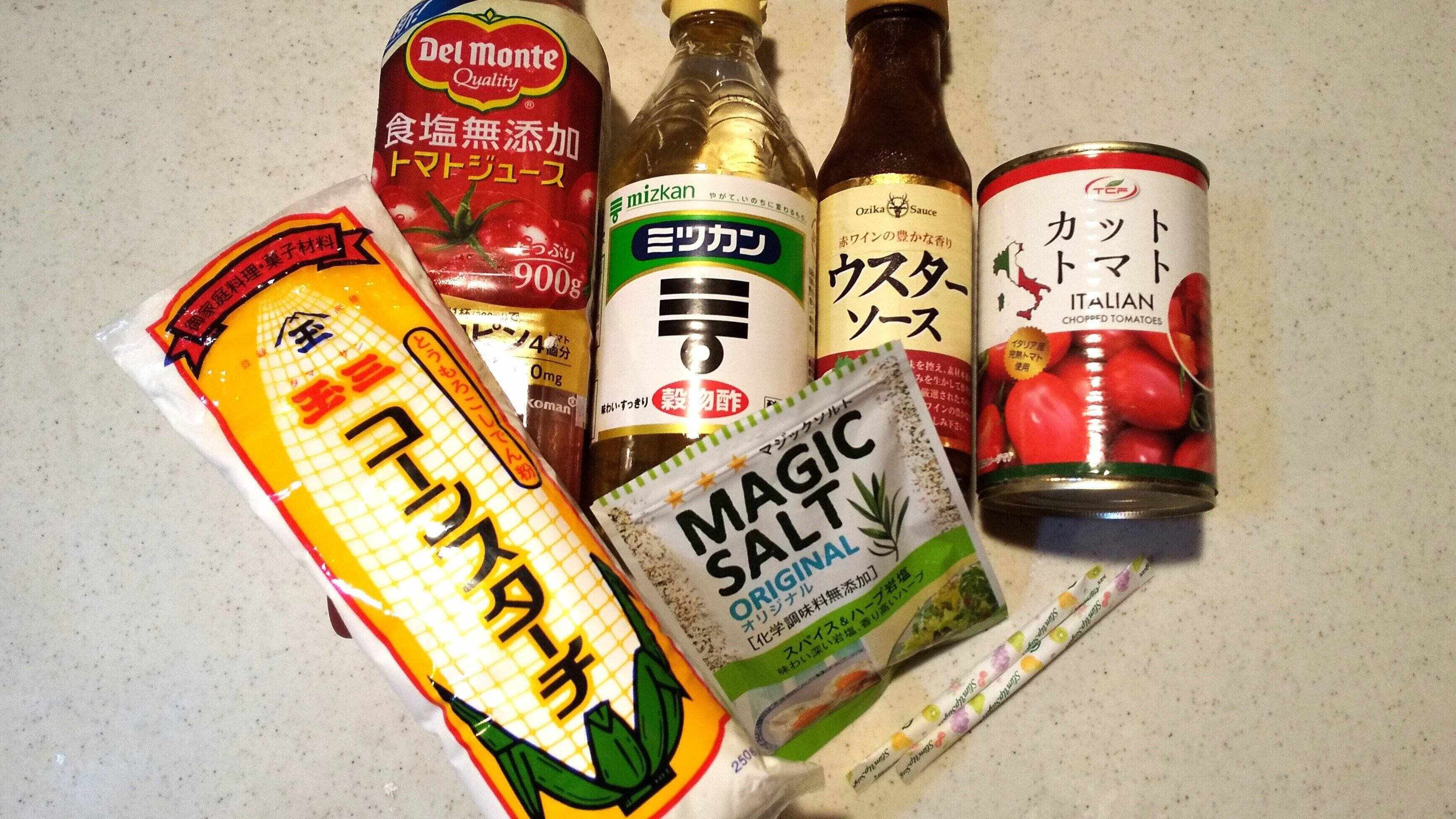 これらの中から、いくつかを組み合わせて代用ケチャップをつくってみることにしました。