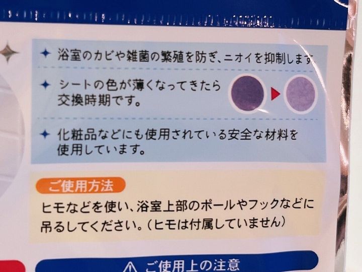 シートの色が変わるので、シート交換時期も分かって助かります。使用期間の目安は約1か月です。お風呂の広さが1坪の広さであれば、シート1枚でOK。お風呂の広さによって、枚数は調整してみてください。