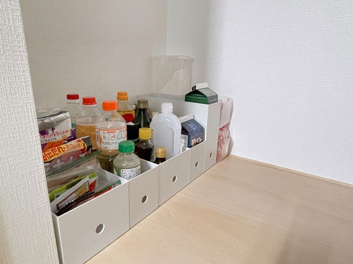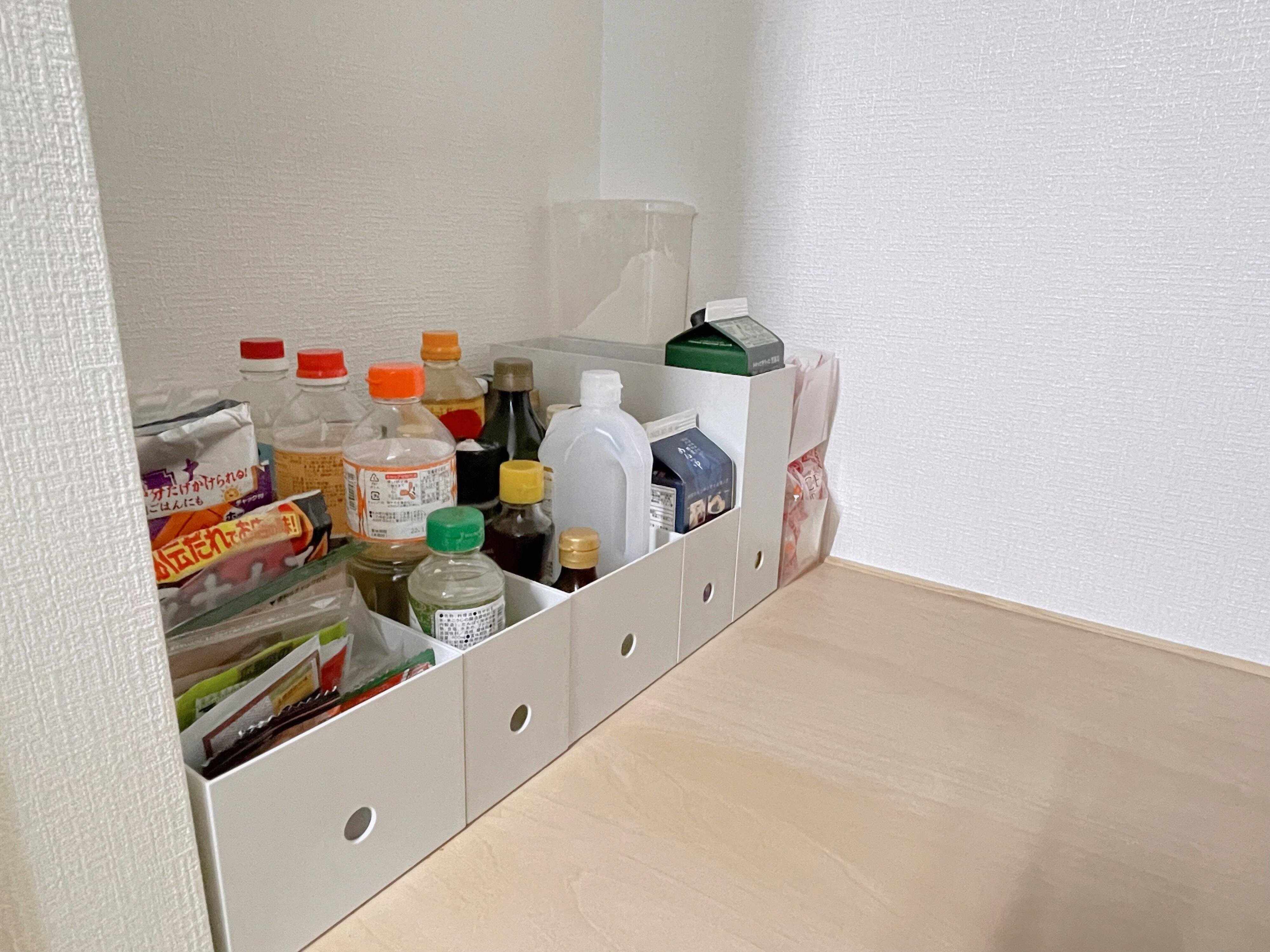 調味料を整頓するのに最適なのが、無印良品の「ファイルボックス1/2」を使っての収納です。