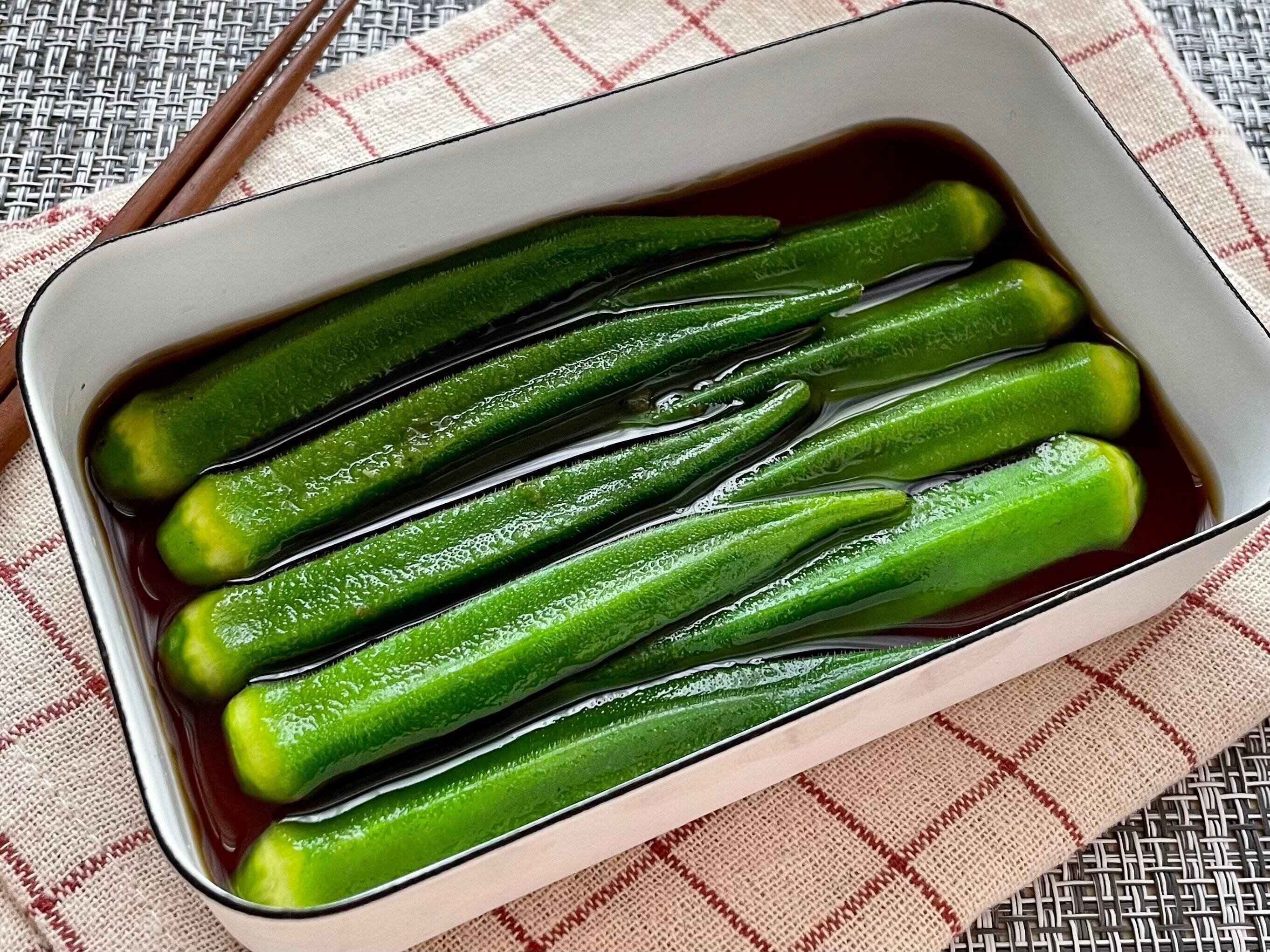 サッとゆでたオクラを、柚子胡椒を効かせたタレに漬け込むお手軽レシピ。工程が少ないので、暑い中キッチンに長時間立つ必要もありません。