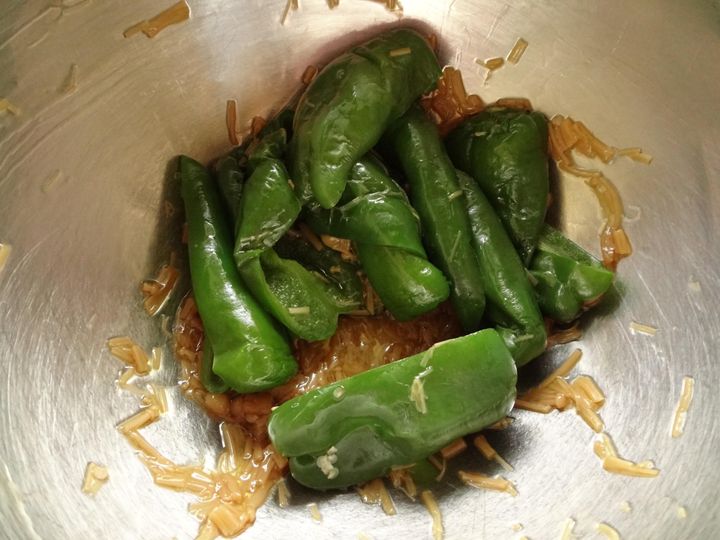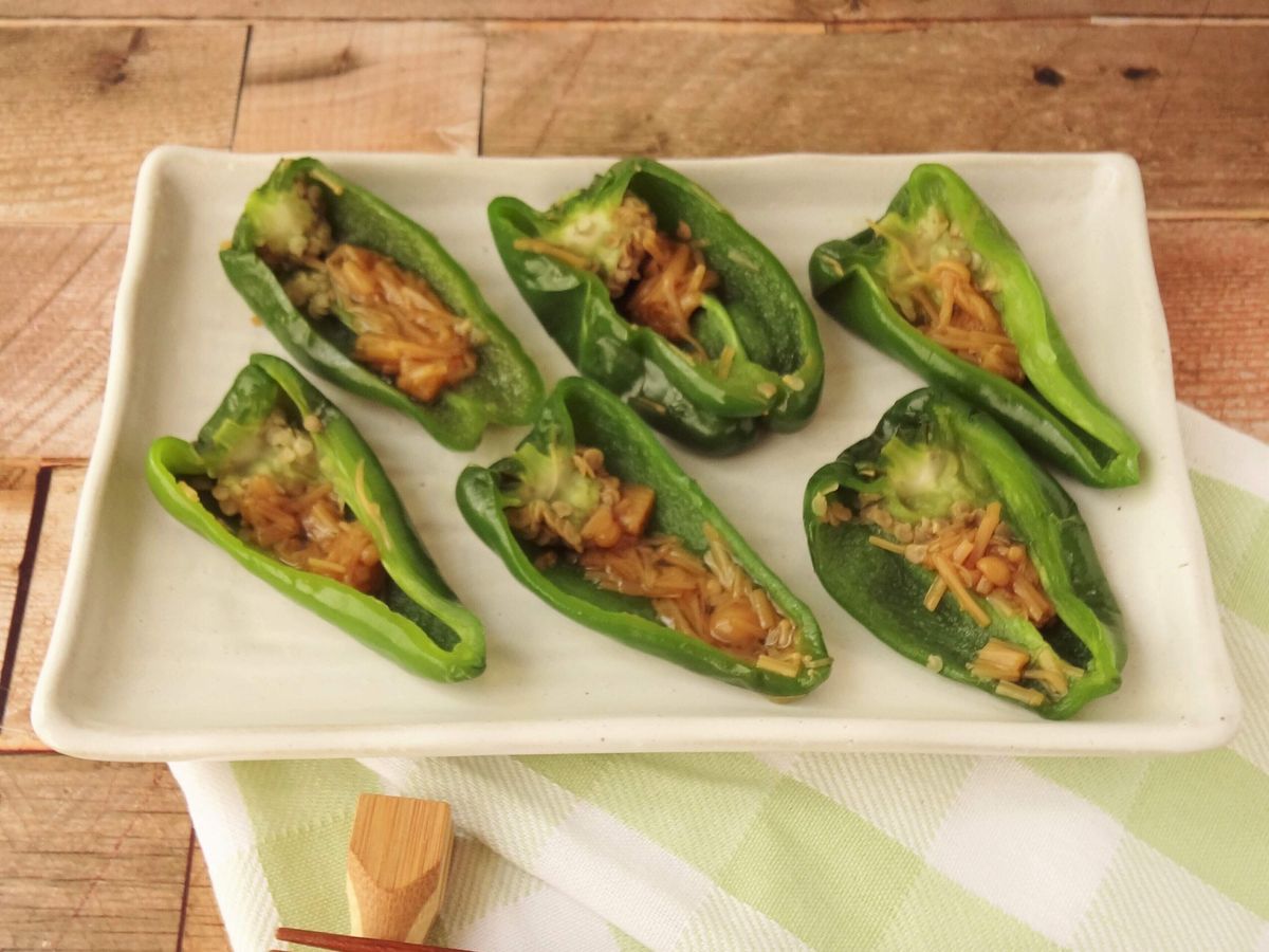 電子レンジでしっかり加熱すると、種までおいしく食べられます。加熱時間は電子レンジによって調節して下さい。盛り付けるときにピーマンを器のようにしてなめ茸を乗せると、そのままパクッと食べやすいです。