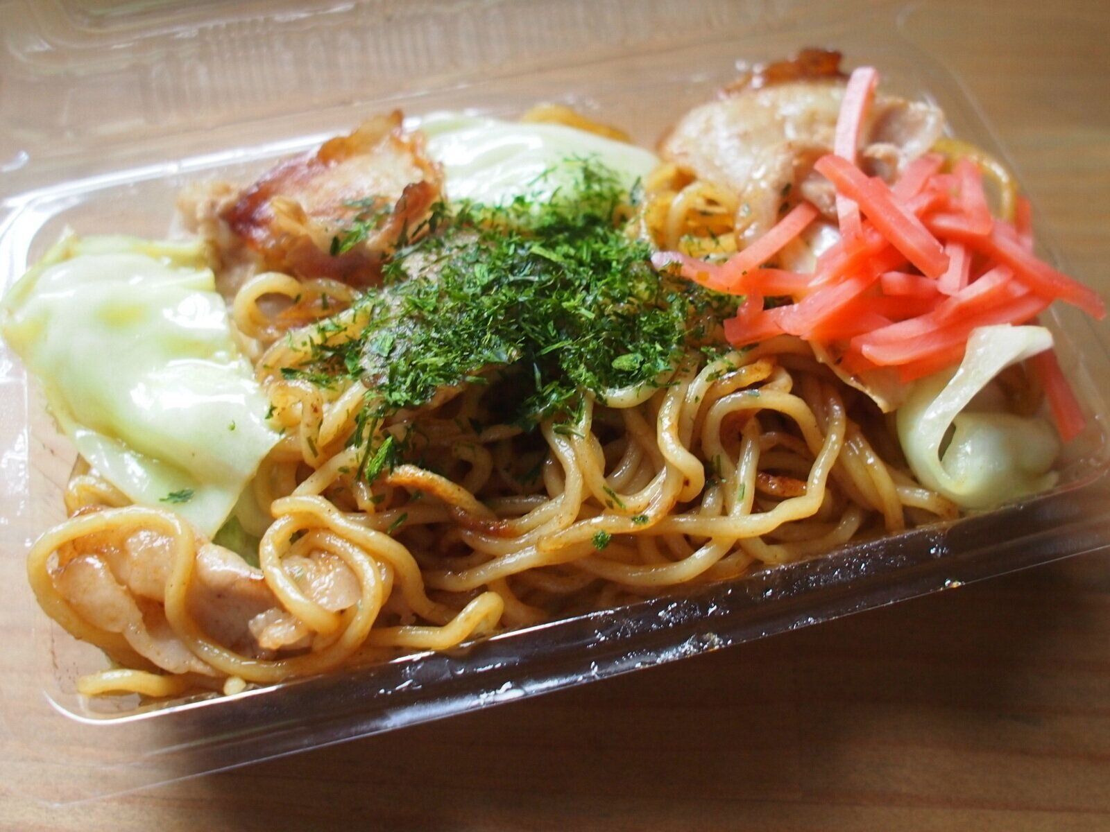 紅生姜、青のりと並んで重要なのが、完成した焼きそばをどう盛るか。屋台風ですから、ここは当然フードパックに入れます。また、紅生姜と青のりの添え方にもこだわりたいところ。写真のように中央に青のり、左右どちらかに紅生姜を寄せるとよりらしくなるでしょう。