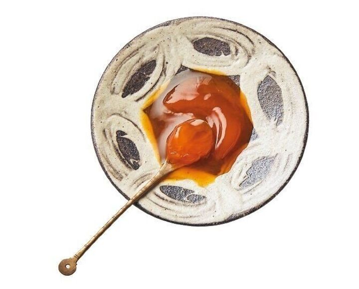 卵黄4個をめんつゆ大さじ3につけて途中返して3時間~一晩おく。長く漬けるとねっとり食感に。ご飯やお酒のお供にするほか、ゆでた野菜、ふかしいも、そうめん、和風パスタ、パンなどに添えて。