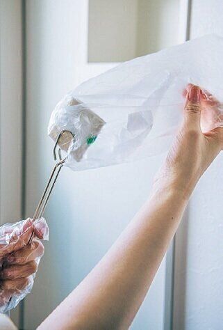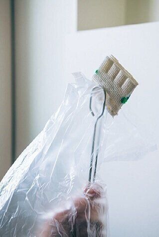 (3)ポリ袋をくるっと返してブラシを袋ごと外す