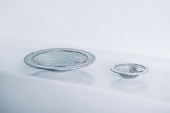 洗面ボウルと浴室の排水口のゴミ受けは、元々ついていた物からステンレス製にチェンジ。「元のはからんだ髪の毛を取るのが大変でした。これは裏返してトントンすればすぐ取れるのがうれしい」。