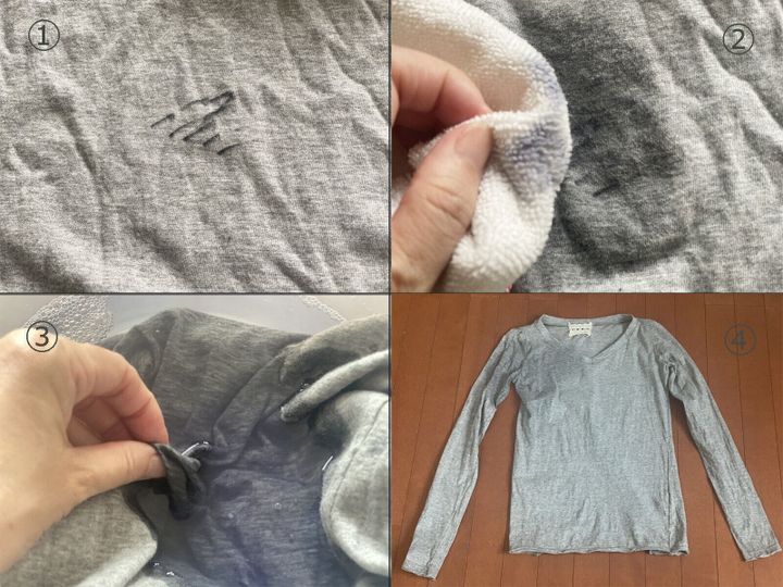 汚れが目立たなくなったら、ぬるま湯に洗濯用洗剤を溶かし、そこに洋服を入れて、汚れのあった箇所を優しくもみ洗いします。最後に洗濯機で普通に洗い上げましょう。