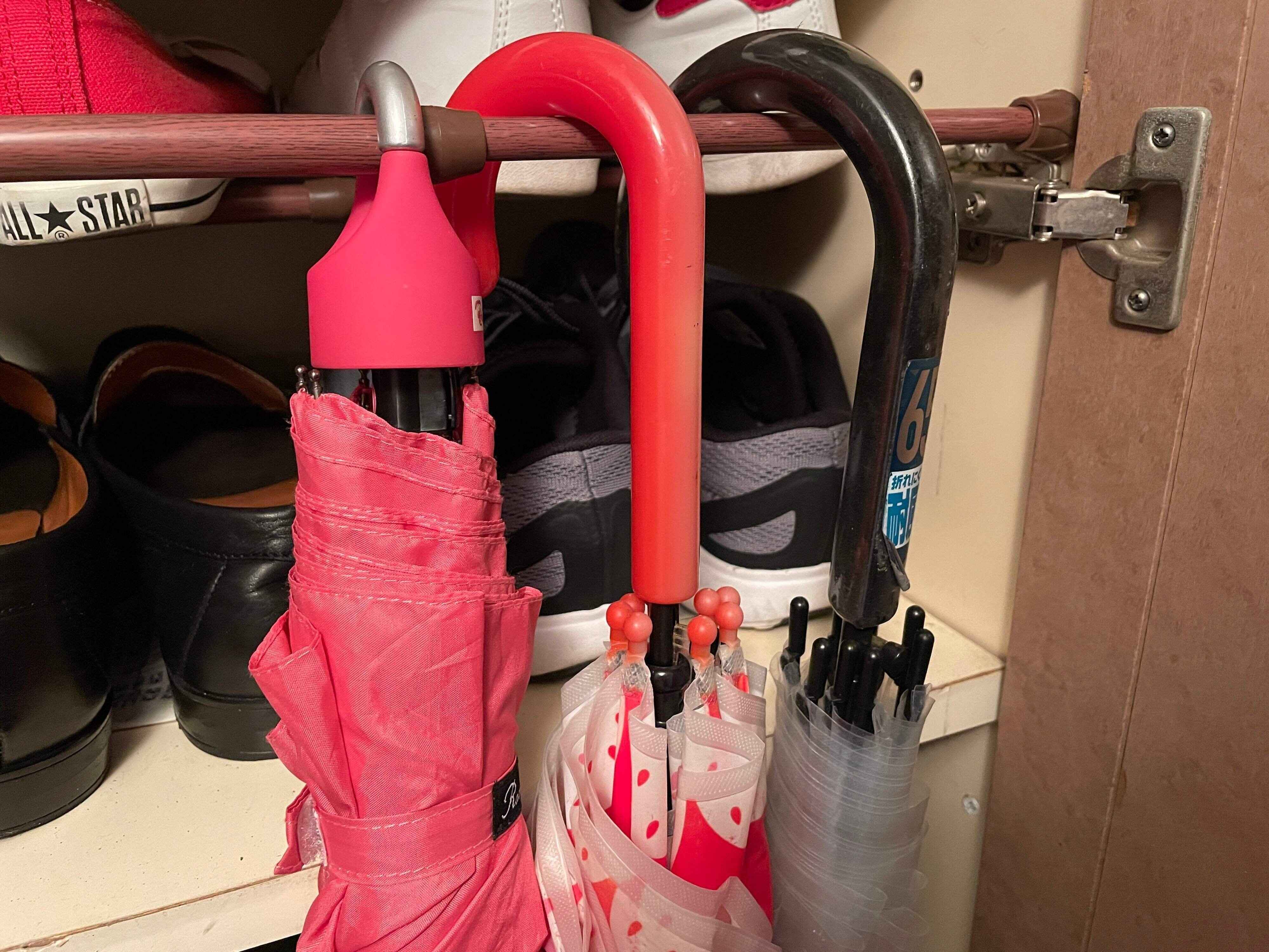 折りたたみ傘を含めて置く場合は、仕訳けられる傘立てを使ったり、S字フックを用意してそこに掛けるなどするのがいいですよ。