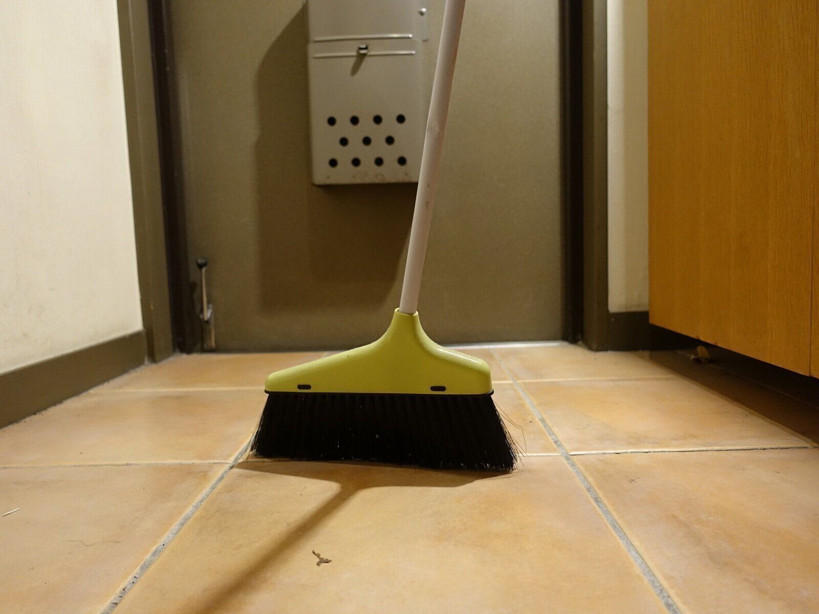 玄関などいきなり水をかけてしまうとホコリなどがこびりついてしまうため、まずは箒とちりとりでホコリを取り除いてから、水をかけて、デッキブラシなどでごすります。最後はよく水で汚れを流しましょう。