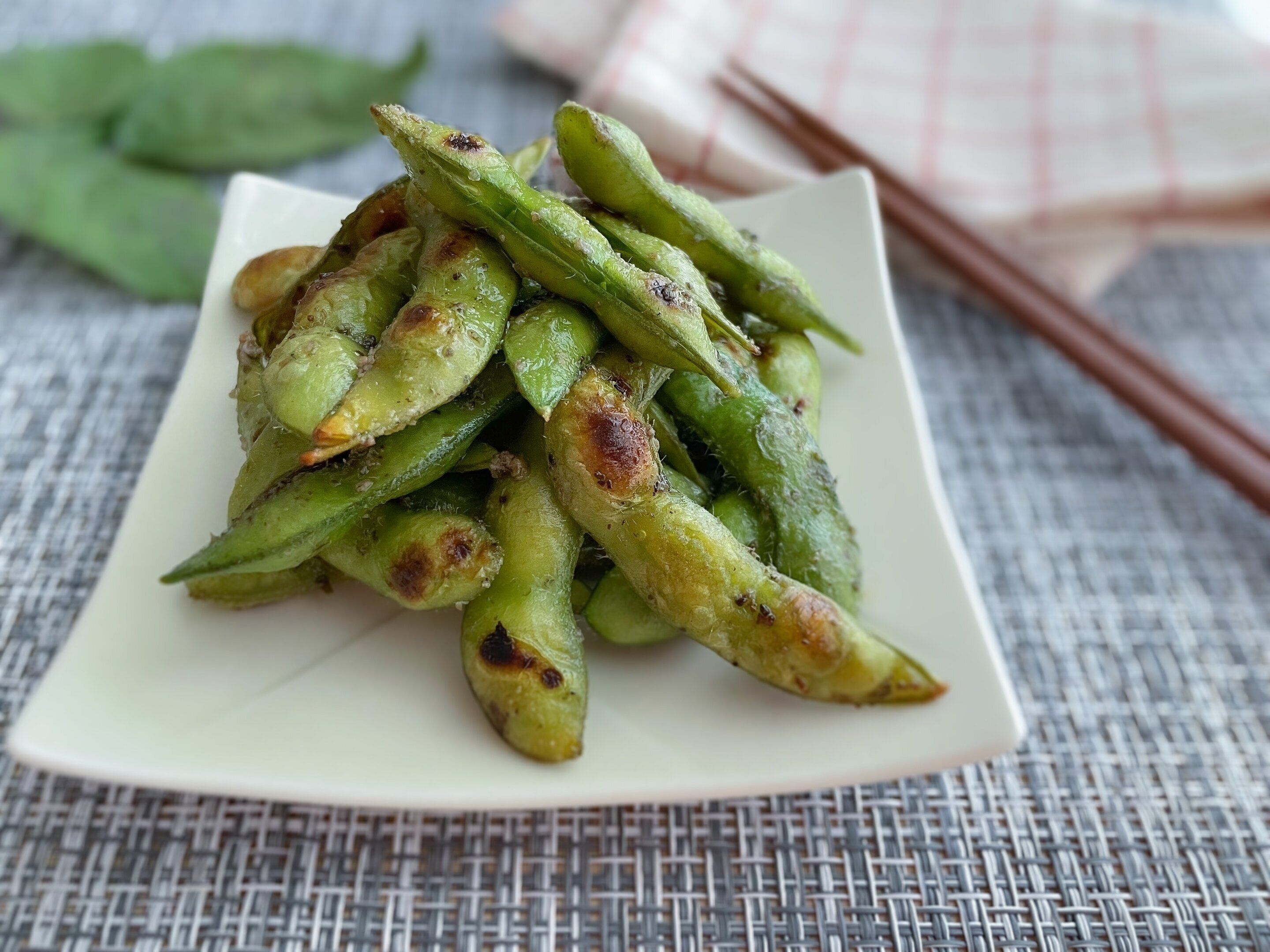 枝豆は、塩ゆでをして食べることが一般的かと思いますが、フライパンで焼く食べ方もおすすめ。茹でないので豆がプリっとしていて、旨みがギュッと詰まっていてやみつきの食感と味わいです。