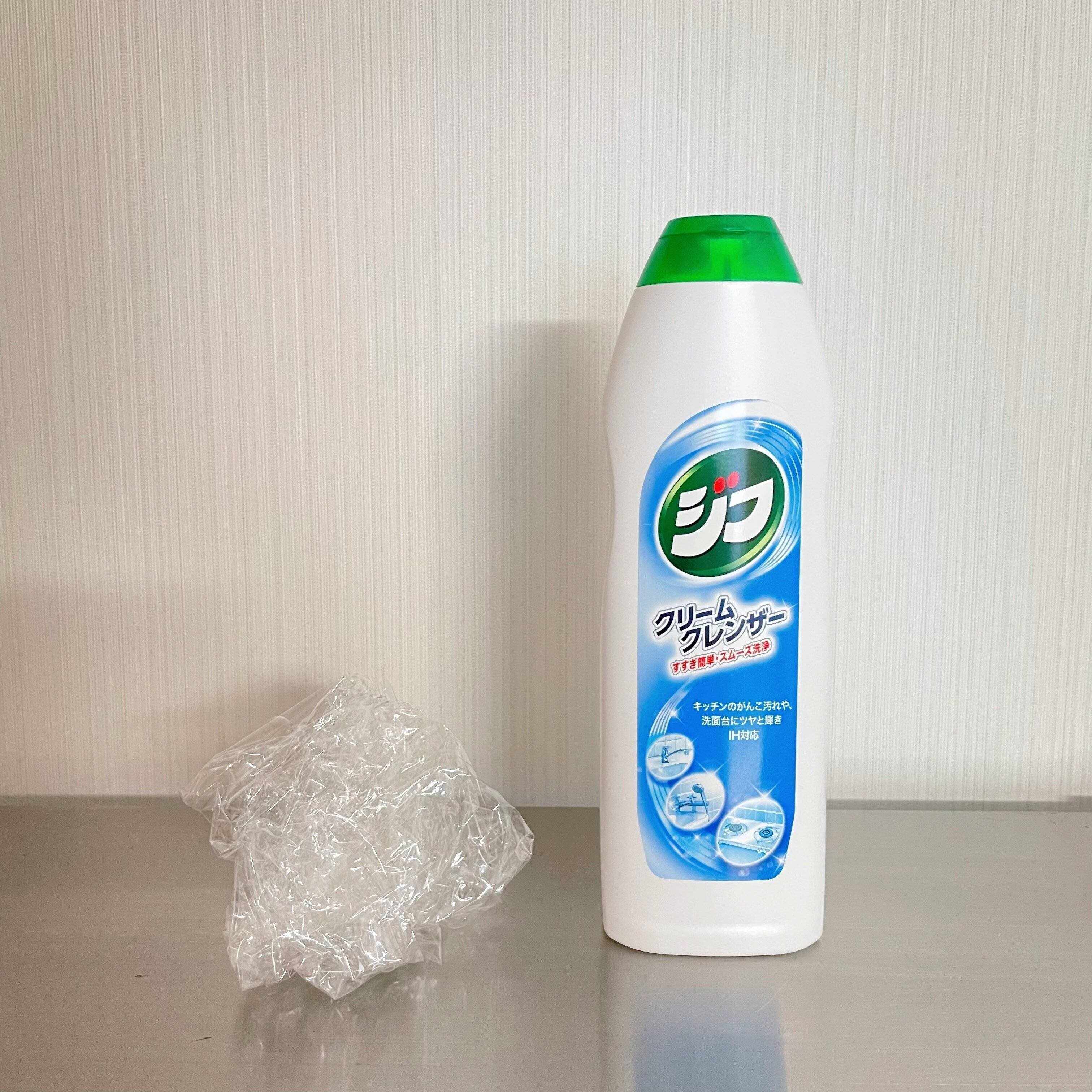 クリームクレンザーには研磨剤が含まれているので、ラップフィルムのような柔らかい素材でも十分に汚れを落とせるんです。