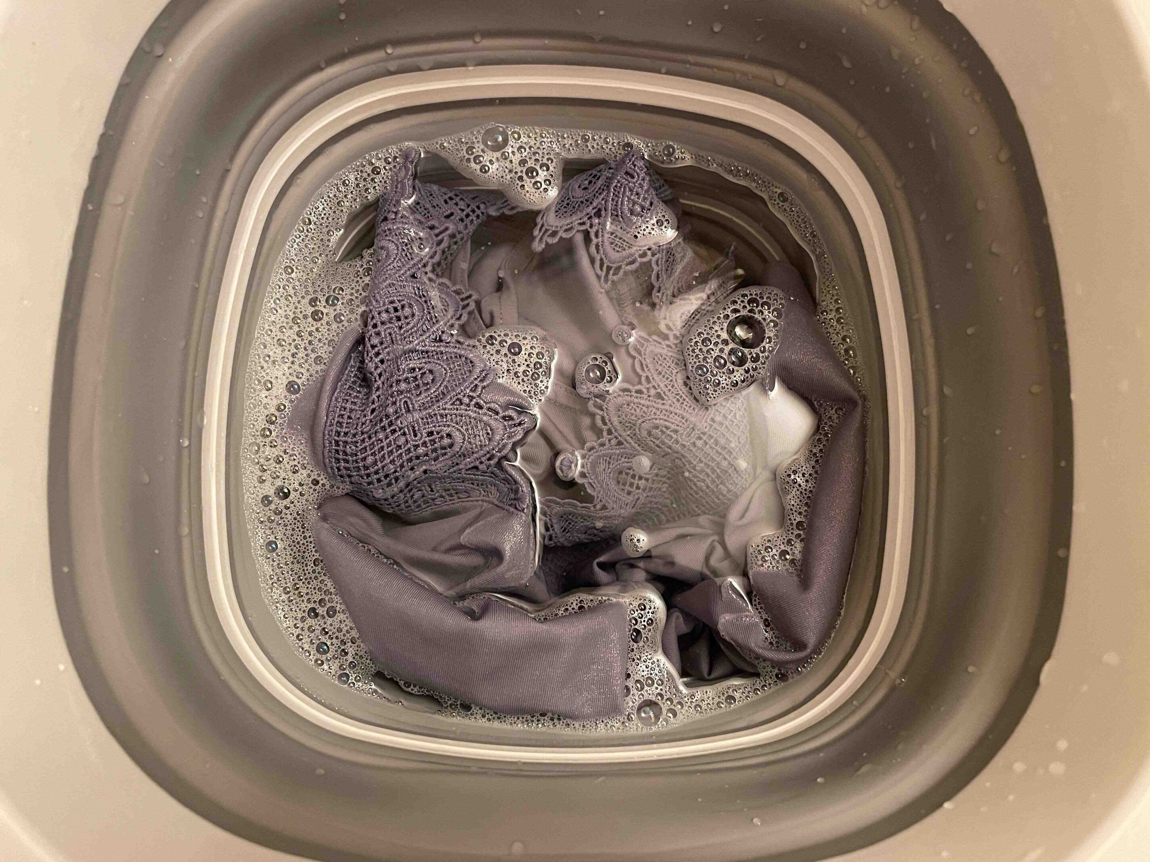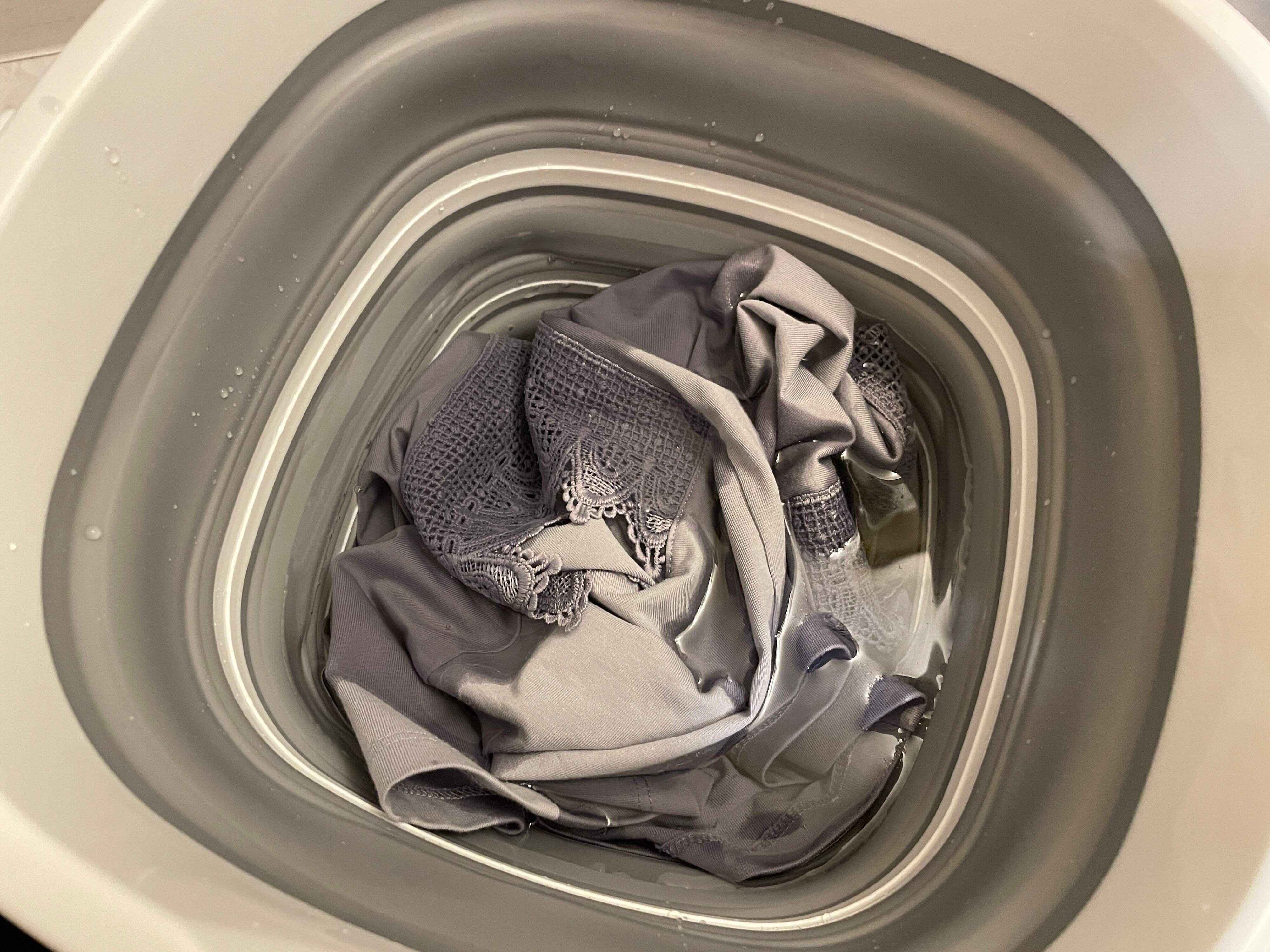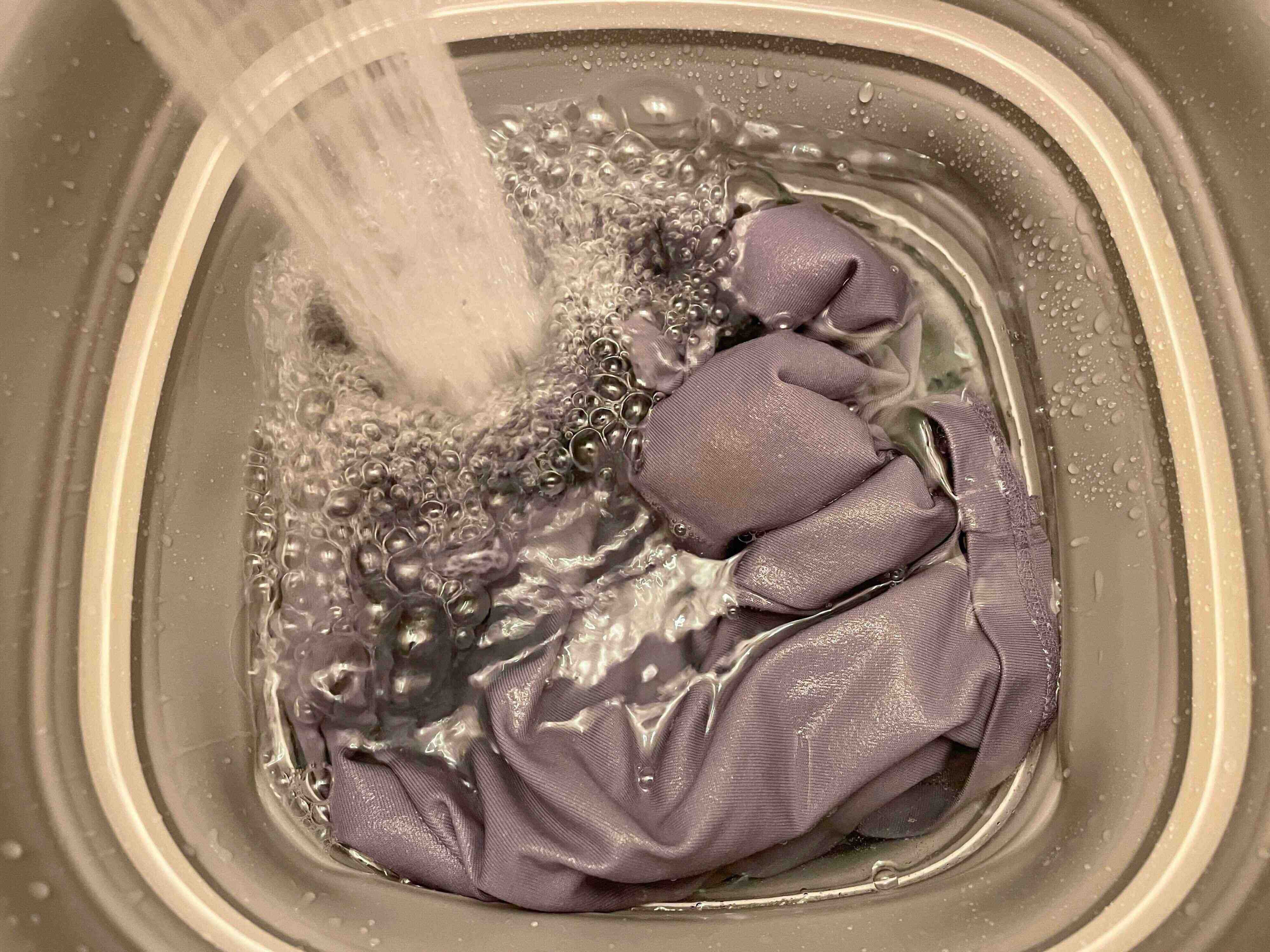 もみ洗いをしても落ちないほど汚れがひどい場合は、そのまま5~15分ほどつけおきをしておきましょう。
