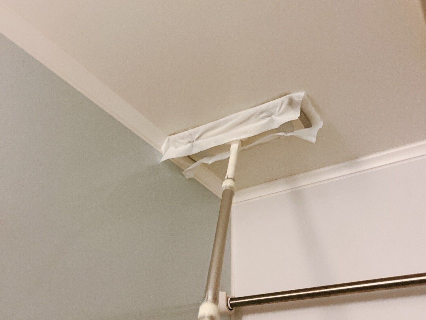 天井にワイパーの裏側を密着させて拭いていきます。まずは、天井全体をまんべんなく拭いていきます。全体を拭き終わった後は、特に汚れが気になる部分を念入りに拭いていきます。