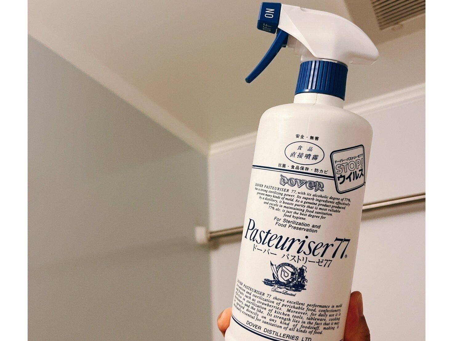 天井掃除が一通り終わった最後に、消毒用のアルコールスプレーを天井全体に吹きかけましょう。噴霧したアルコールが目や口に入ってもいけませんので、ワイパーにつけたドライシートにアルコールスプレーを吹きかけ、端から一直線に拭いていきます。