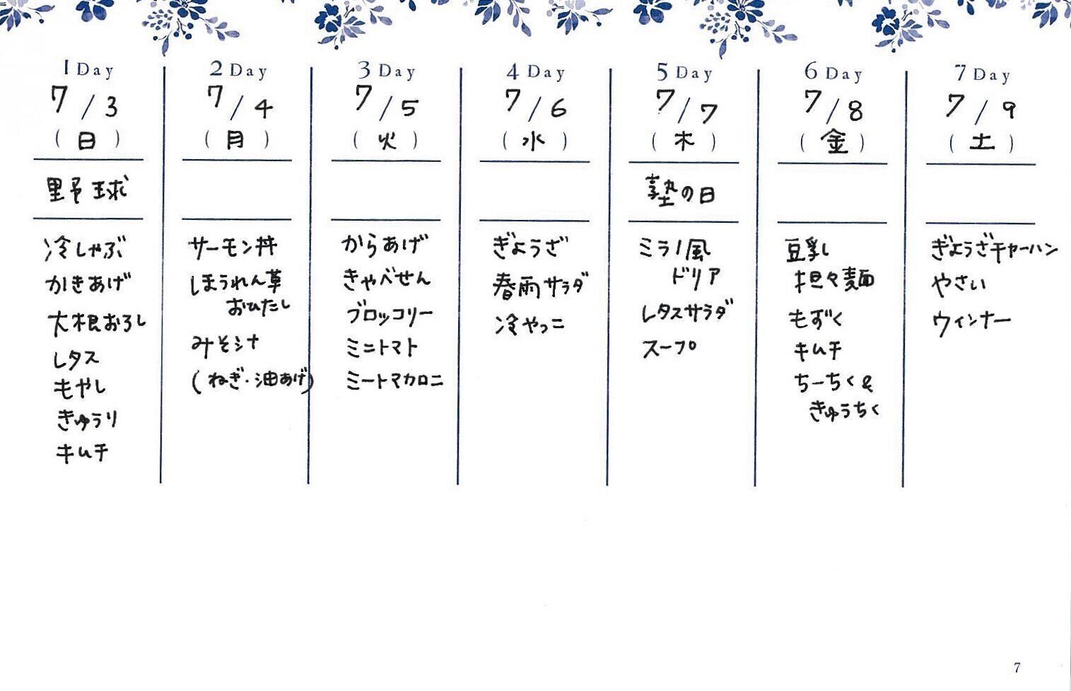 作るのに手間がかかる餃子は、あんを多めに作って冷凍し、土曜日のチャーハンの具に利用。「ちょっぴり面倒でも、2食分使えると思えば頑張れる。手間も食材もムダにしません!」。