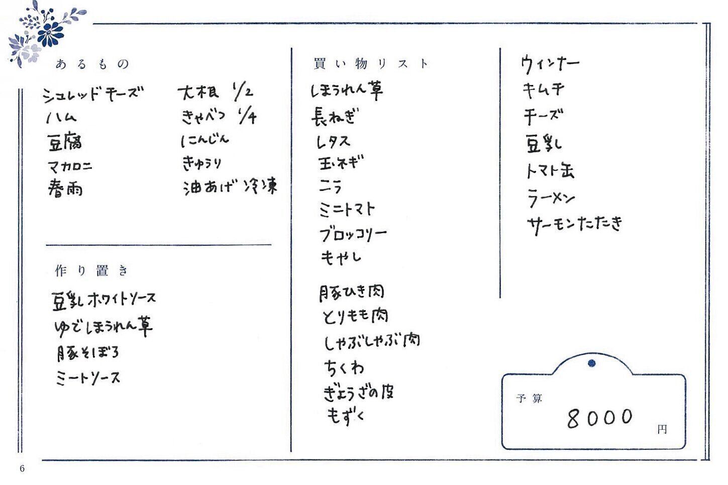 基本は1週間分まとめ買い 買い物リスト