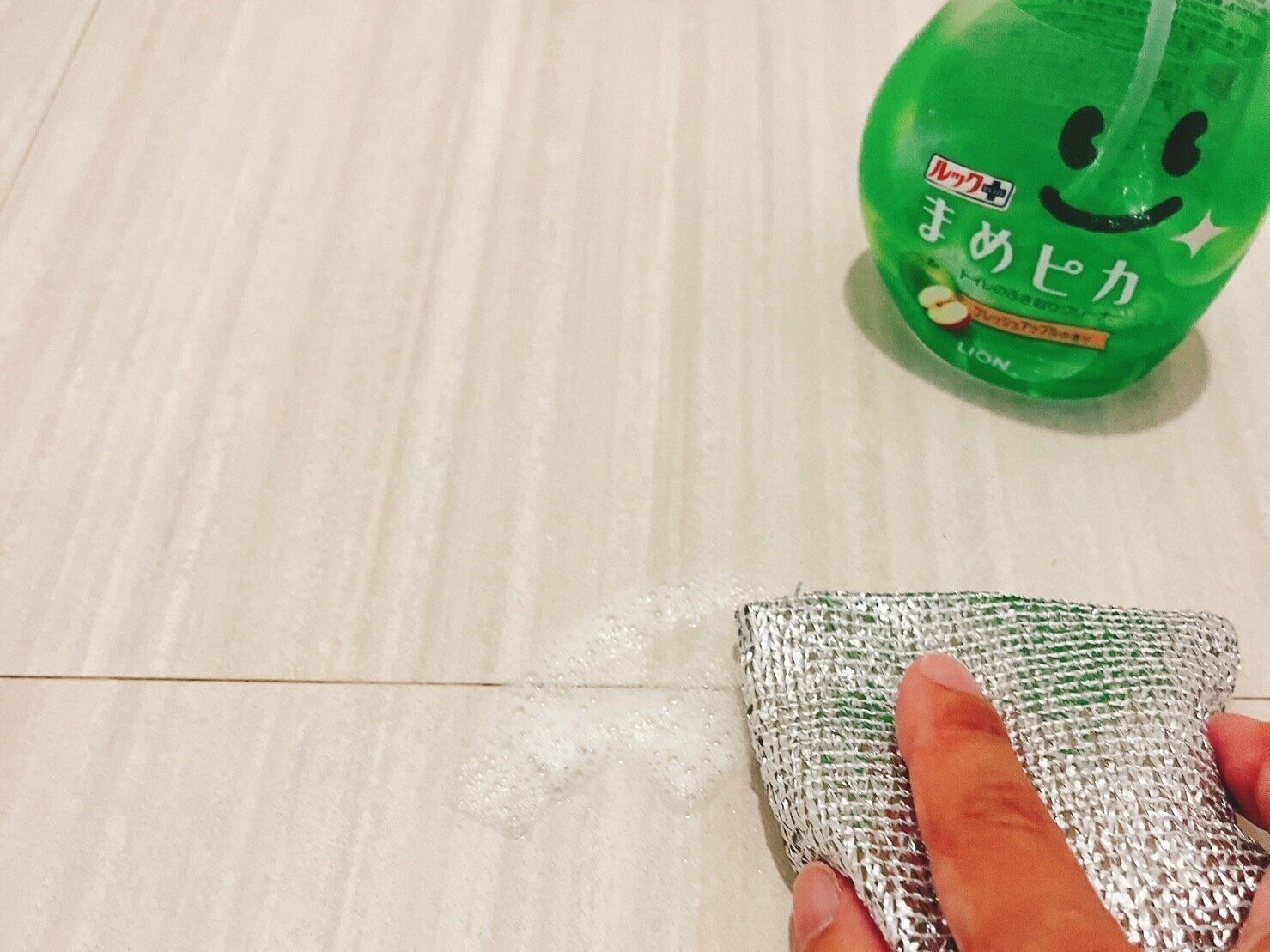 クロスで拭いても汚れが落ちない場合には、スポンジで擦ってみましょう。床に洗剤が残留するとそこからまた汚れやすくなってしまいますので、仕上げに、水拭きと乾拭きをお忘れなく。