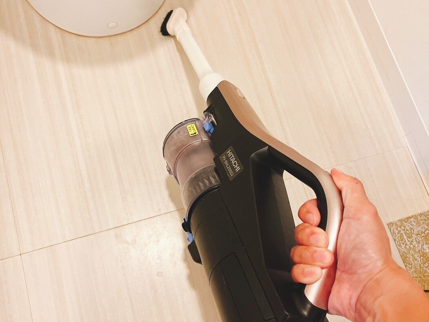 トイレの床には、細かいホコリ汚れもたくさん落ちています。しっかりと汚れを吸い取る為に、ハンディ掃除機を活用すると便利です。便器の裏側や配管の隙間に溜まっているホコリも吸い取ることができます。しかし、床にはたくさんの雑菌が存在している可能性もあります。掃除機のヘッドに雑菌が付着し、そのヘッドでリビングに掃除機をかけると、目に見えない雑菌を広げてしまいます。100円均一で掃除機に接続できる細長いノズルを購入し、トイレ用として使用すると安心して掃除することができますので、おすすめです。