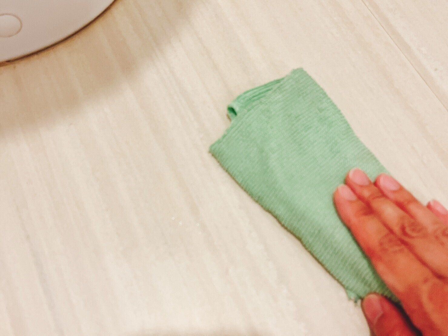 トイレの床もリビングと統一性を持たせる為に、フローリング素材の方もいらっしゃると思います。フローリングは湿気に弱い上に、洗剤や掃除道具を使用することで、表面のコーティングが傷つく可能性もあります。フローリングの場合は、ぬるま湯に中性洗剤を垂らし、クロスを濡らして固く絞り、床を拭きます。その後は、洗剤が残留しないように、水拭き、乾拭きの順番で仕上げていきます。フローリングに水を浸透させない為にも、素早く済ませましょう。