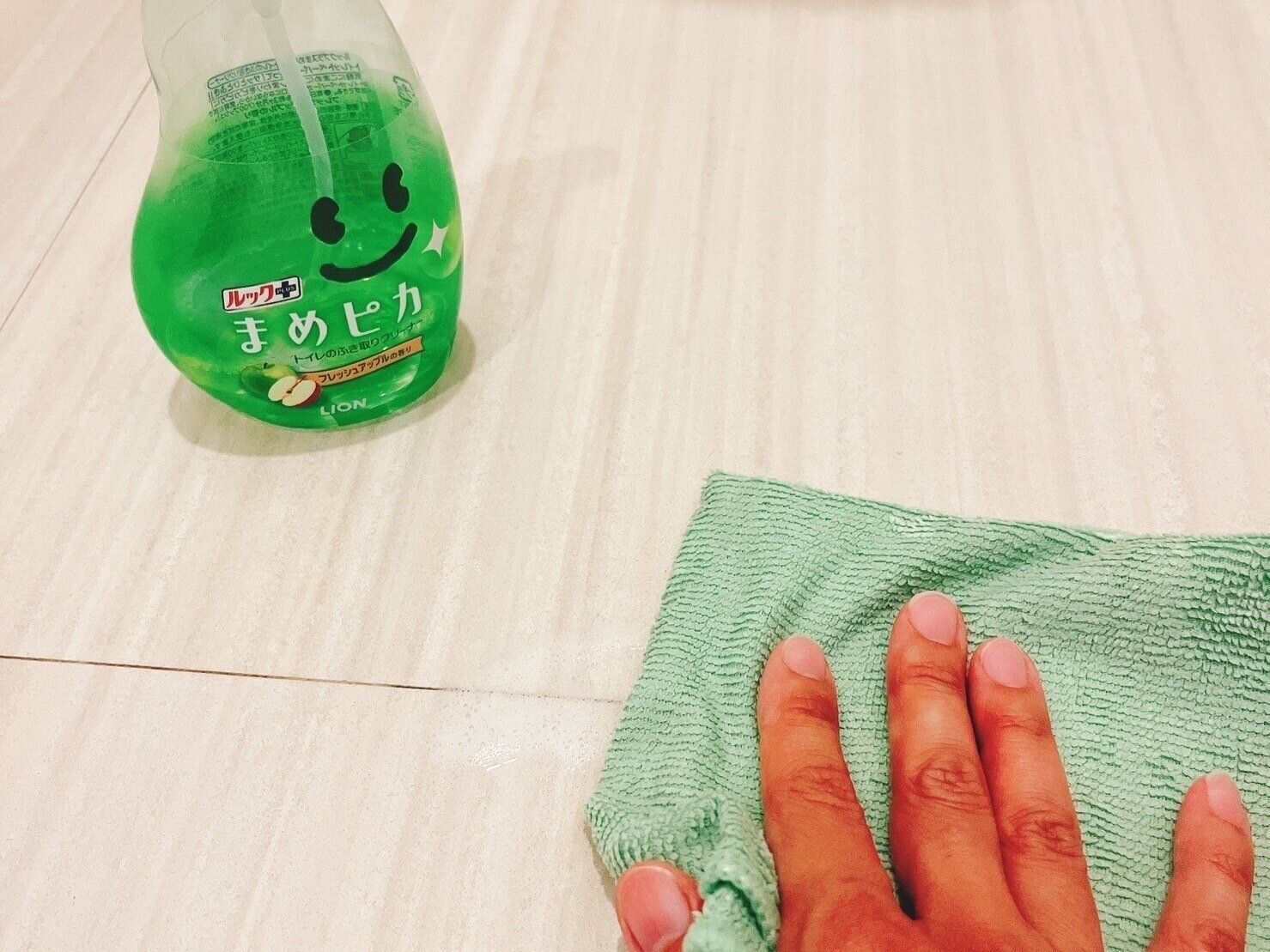 その後、トイレの床にクエン酸スプレー(水100mlに対してクエン酸小さじ2分の1を溶かし、スプレーボトルに入れる)を吹きかけて、すぐに水拭き、乾拭きをしていきます。特に臭いが気になる場合は、クエン酸スプレーでの床拭きを何度か繰り返しましょう。