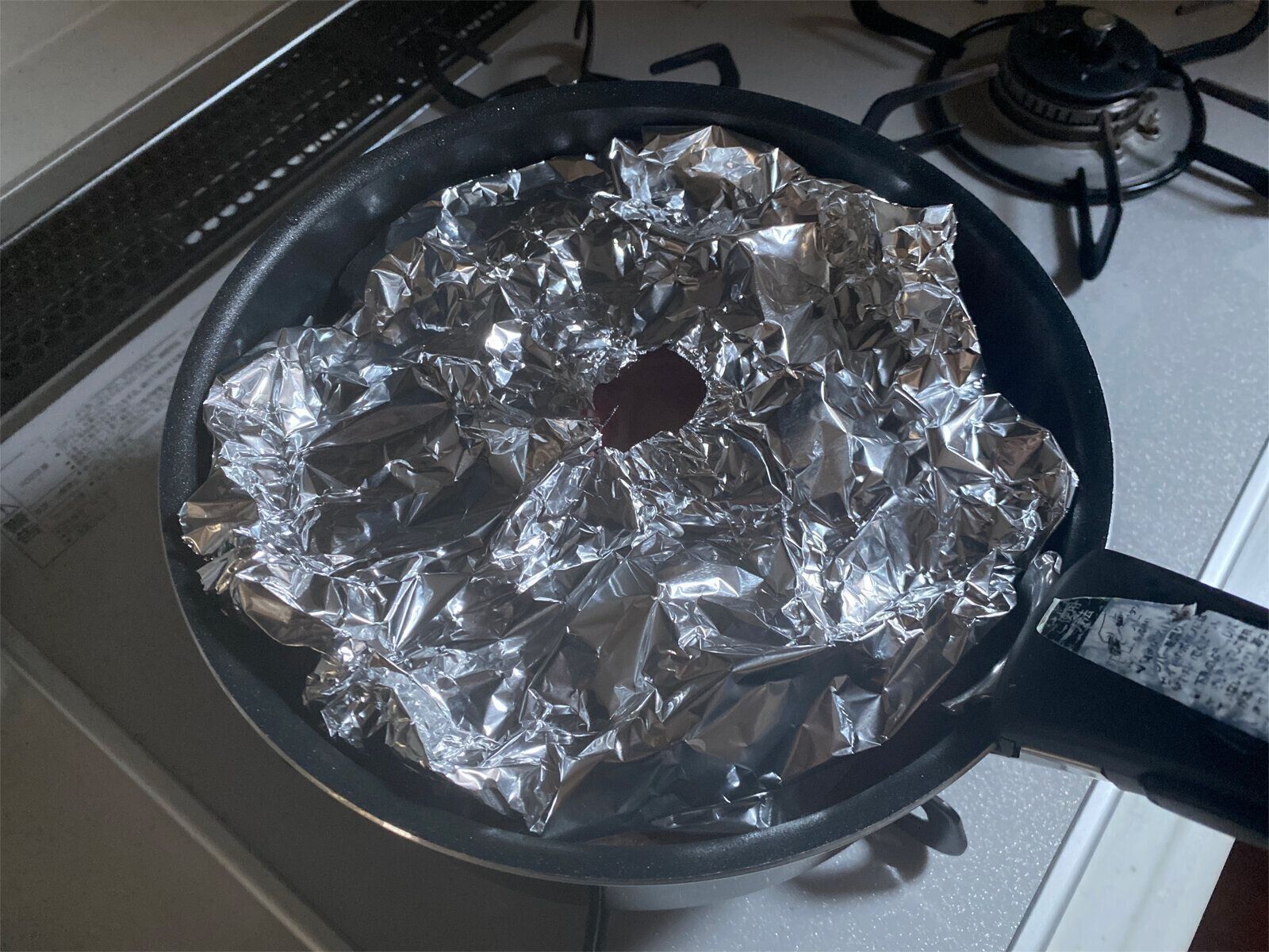 落としぶたは、アルミホイルやクッキングペーパーで代用することができます。鍋に大きさより少し小さめに切り、真ん中に穴を開けておきます。穴があると、煮えたときに浮き上がってしまうのを防ぐことができます。鍋より小さいサイズの紙皿でも代わりになります。