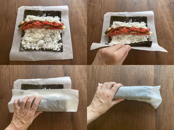 巻きすの代用には、アルミホイルやクッキングペーパー、ラップが使えますが、ラップは食材がくっつきやすかったり、柔らかすぎたりして扱いにくいこともあります。