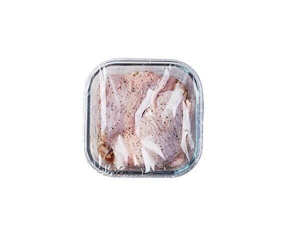 耐熱容器に[A]を入れてよく混ぜ、その上に鶏肉を皮目を上にしてのせて塩、黒こしょう適量をすり込む。