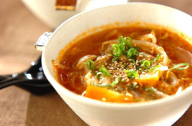 「冷凍こんにゃくのユッケジャンスープ」では、薄切り冷凍こんにゃくを解凍し、1cmの棒状に切って使います。このレシピに使うこんにゃくは、棒状に切らなければならないため、ちぎって冷凍したものは不向きですが、細かく切って使ってみてもよいでしょう。